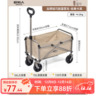 原始人露营推车营地拖车户外折叠旅行手推野餐小推车野营遛娃快递手拉车 95L 轻巧款卡其【静音万向轮】