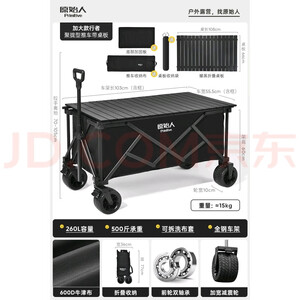 伯希和(Pelliot)HIKER露营车户外折叠手拉小推车便携野餐摆摊拖车16306003曜石黑