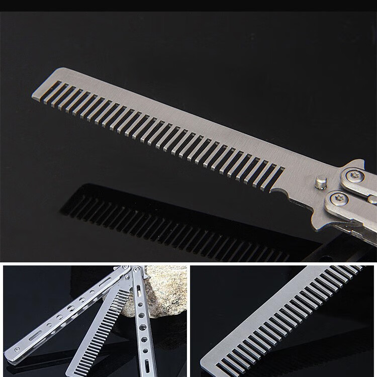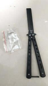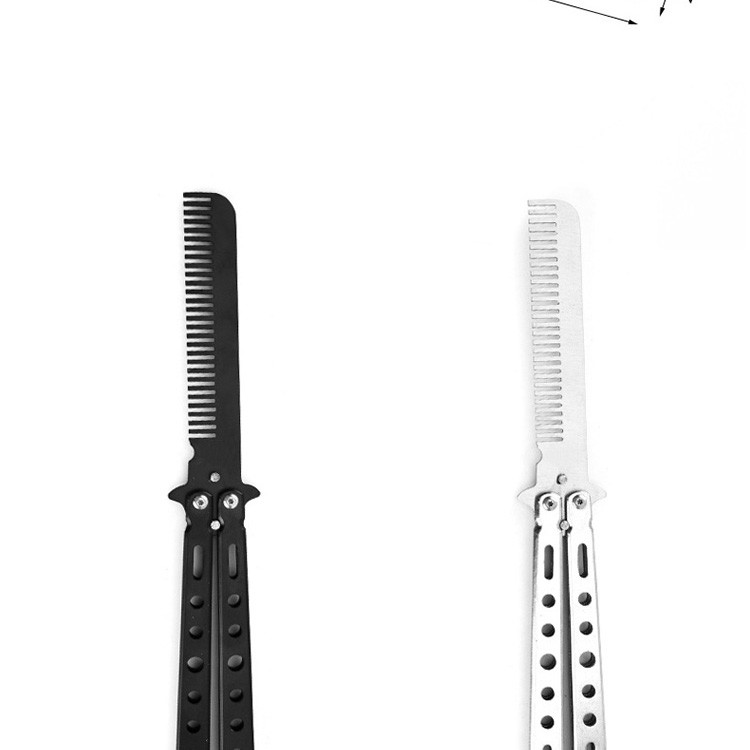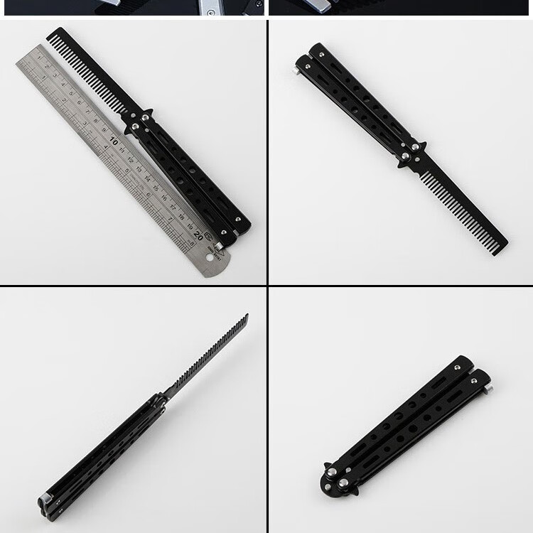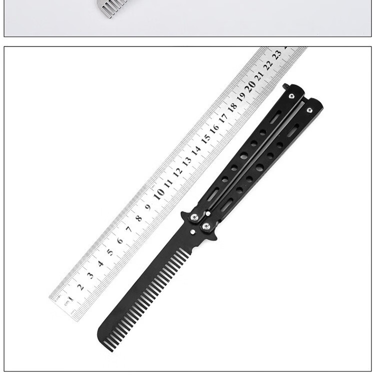 雷佰 蝴蝶梳子训练习折叠梳子未开刀刃甩手梳 黑色蝴蝶梳