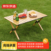 京东京造 户外折叠桌 碳钢蛋卷桌野餐露营装备便携桌子大号90cm木纹色