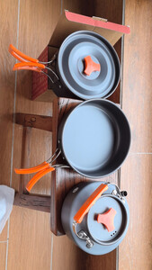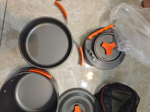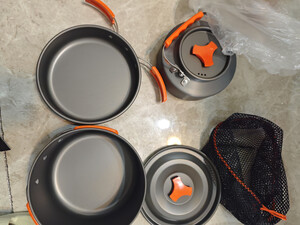 户外桌椅板凳都配置齐全了,还差一套能够在户外烧水泡面的厨具,正好双11的时候,就入手了一套京造的,套装一套就够,材质轻巧,做工好,好评!