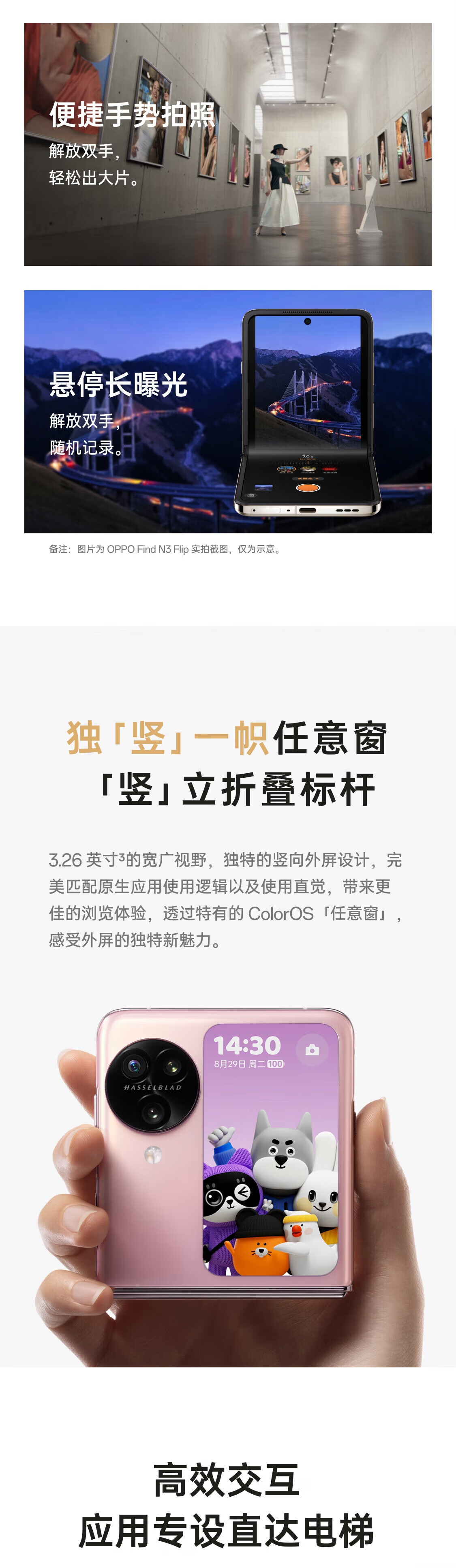 OPPO Find N3 Flip 分期免息白条可选120Hz镜面屏 5G 小折叠屏 薄雾玫瑰 12GB+256GB