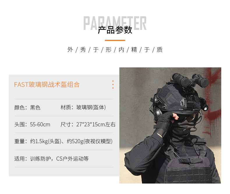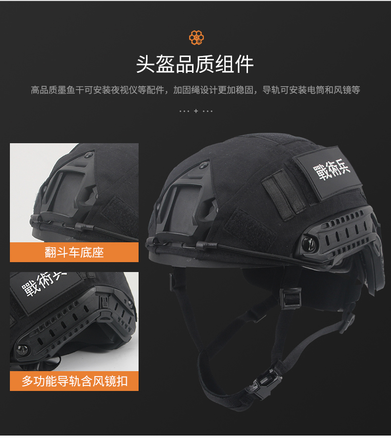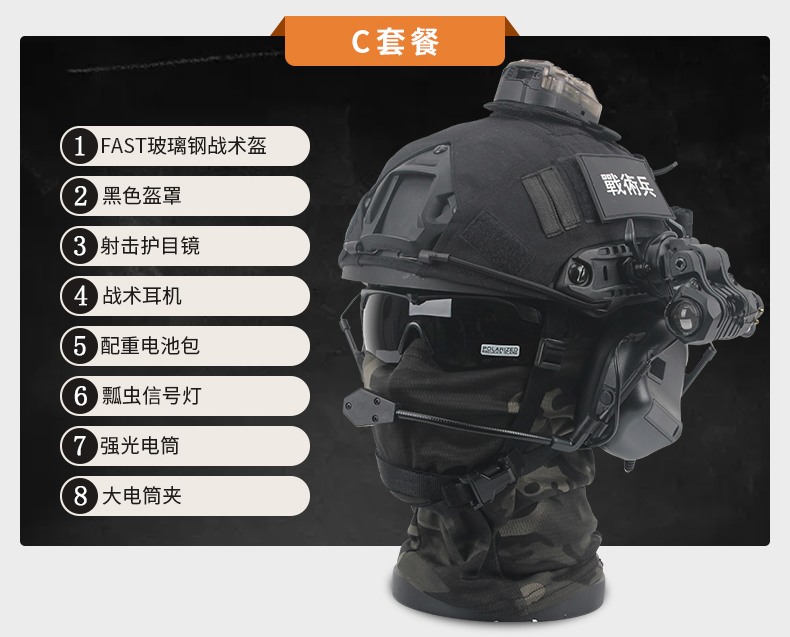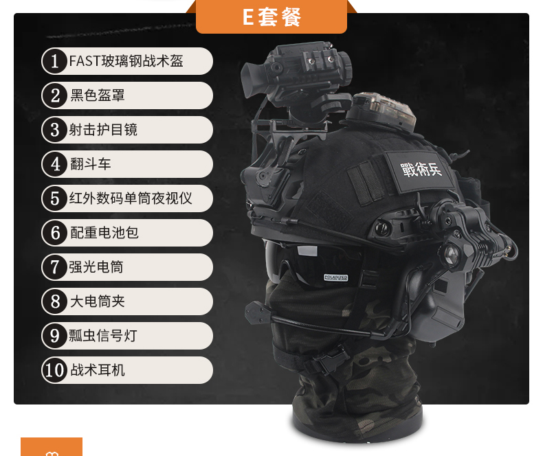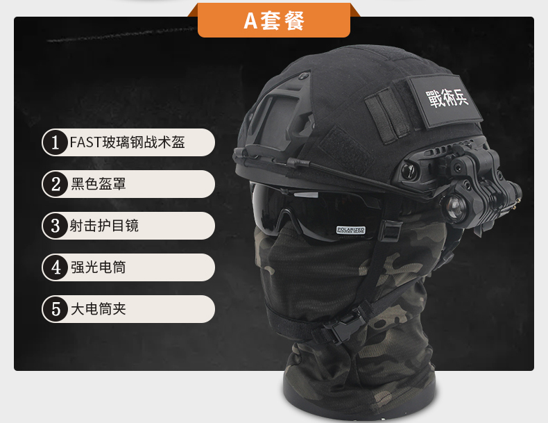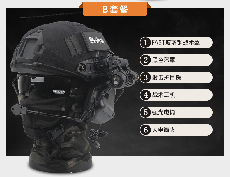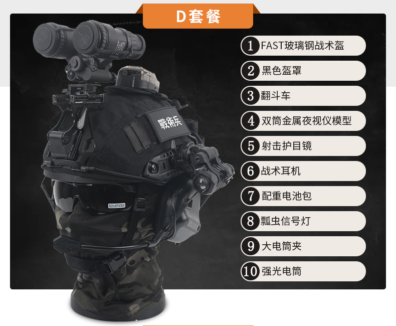战术兵FAST黑色夜视仪套装作训玻璃钢防暴训练战术头盔 D套餐(盔罩默认黑色,颜色备注)