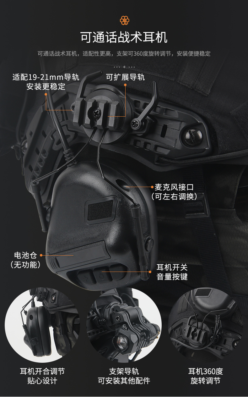 战术兵 五代拾音降噪战术耳机耳麦 ipsc军迷CS射击抗噪通讯对讲耳麦 头盔式耳机(黑色)