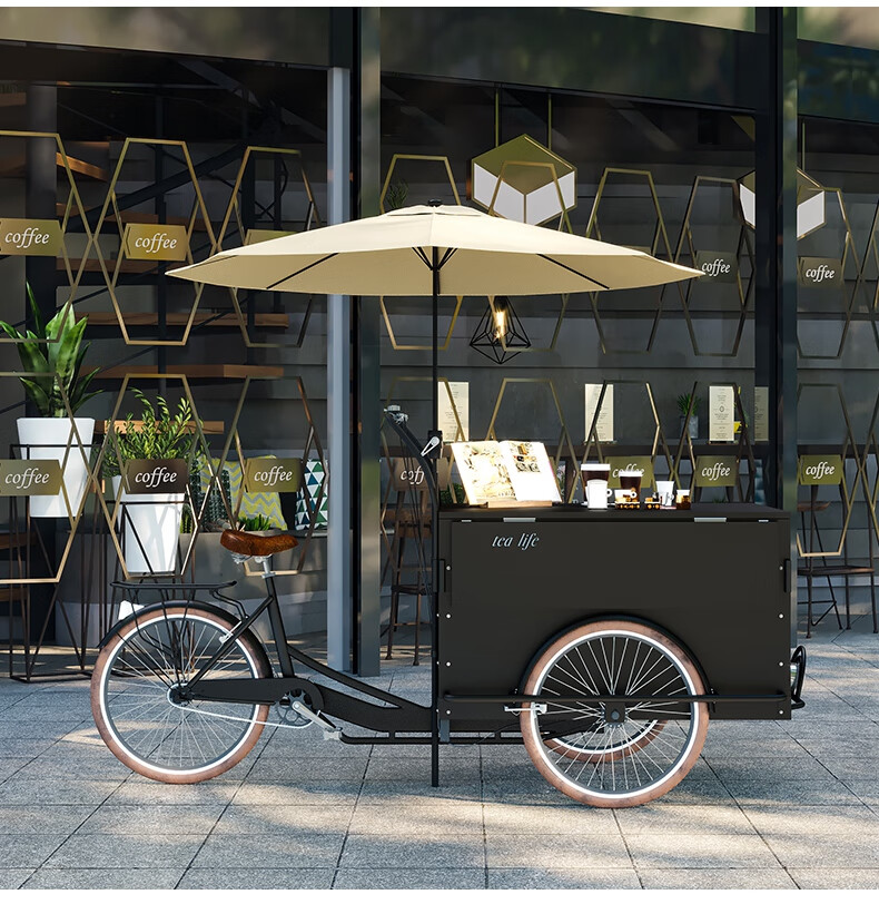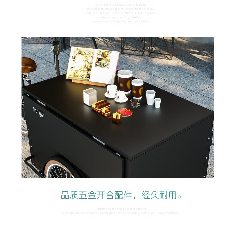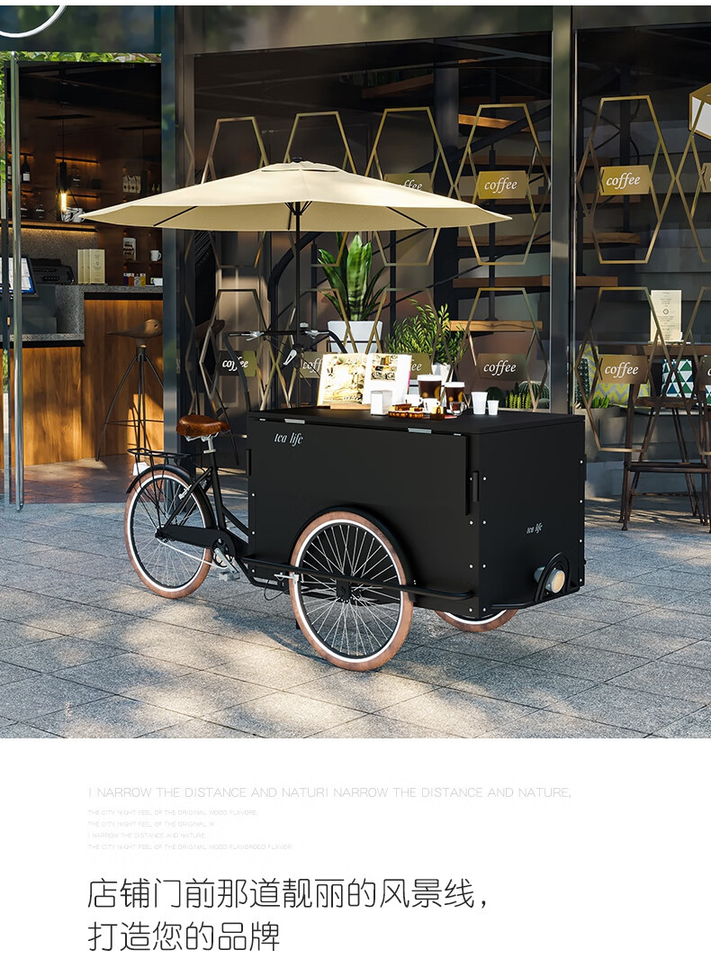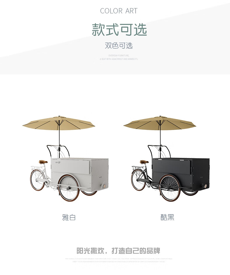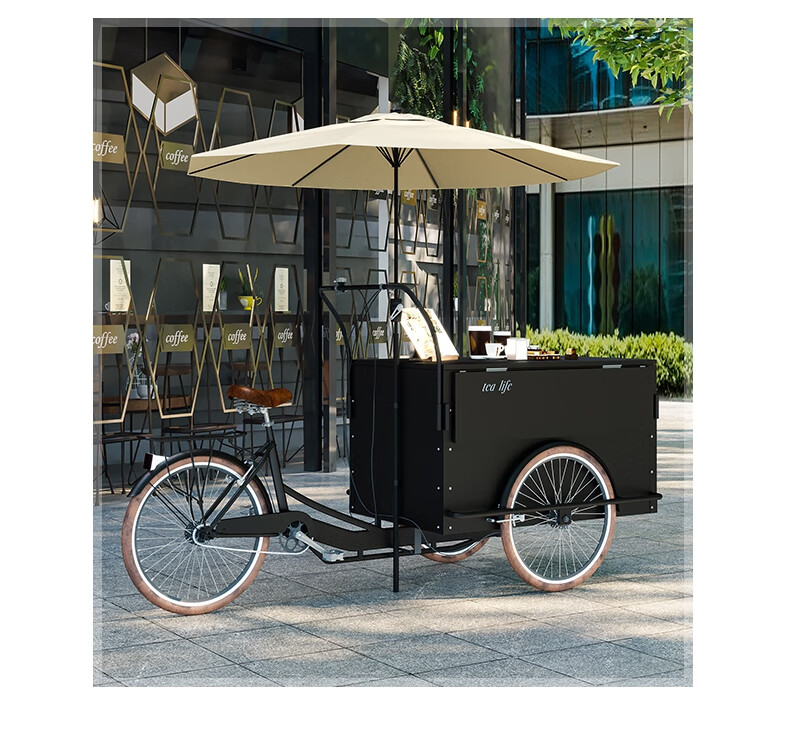 户外可移动售货车流动式景区花车商业展示售卖车倒骑驴三轮摊位车 黑色不带伞(棕色轮子) 官方标配
