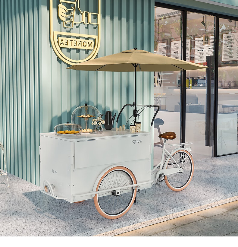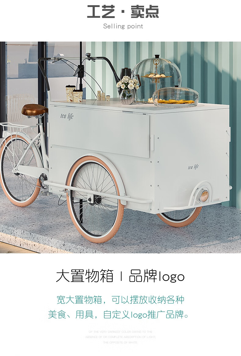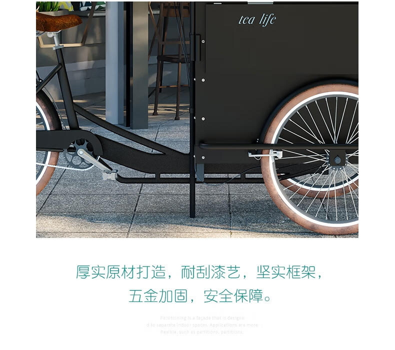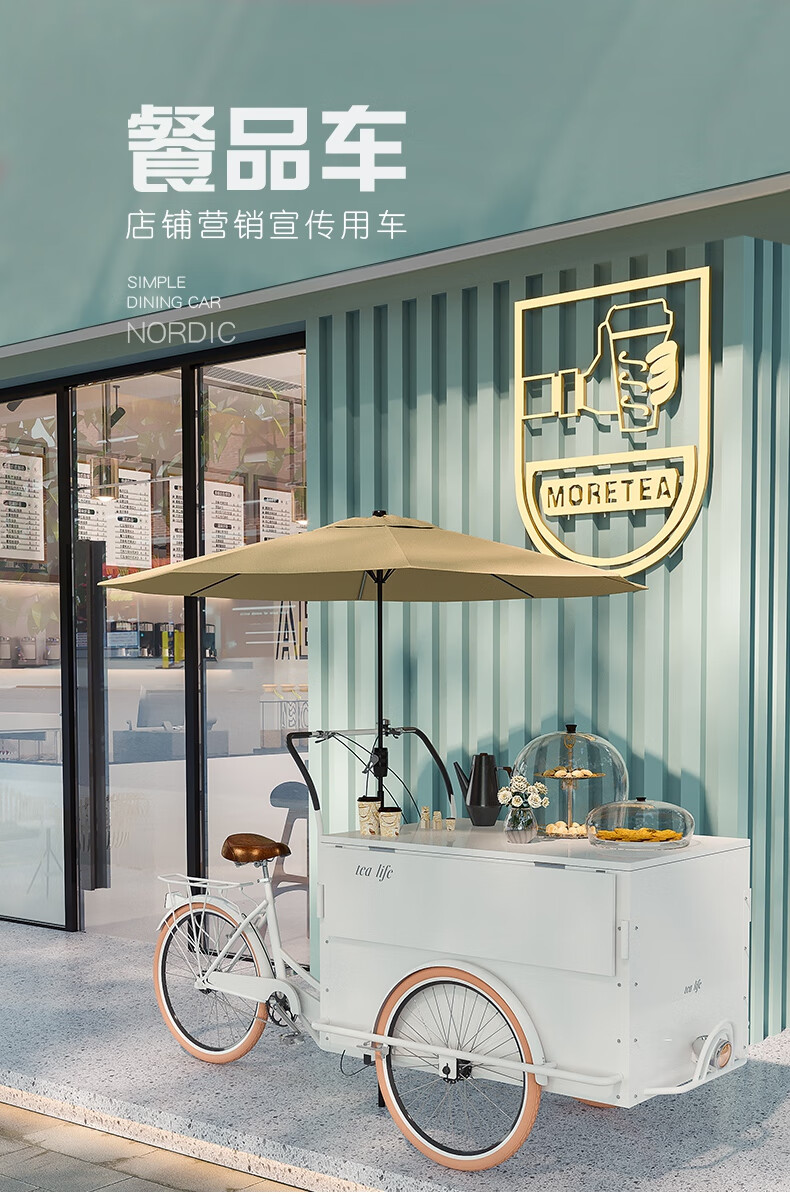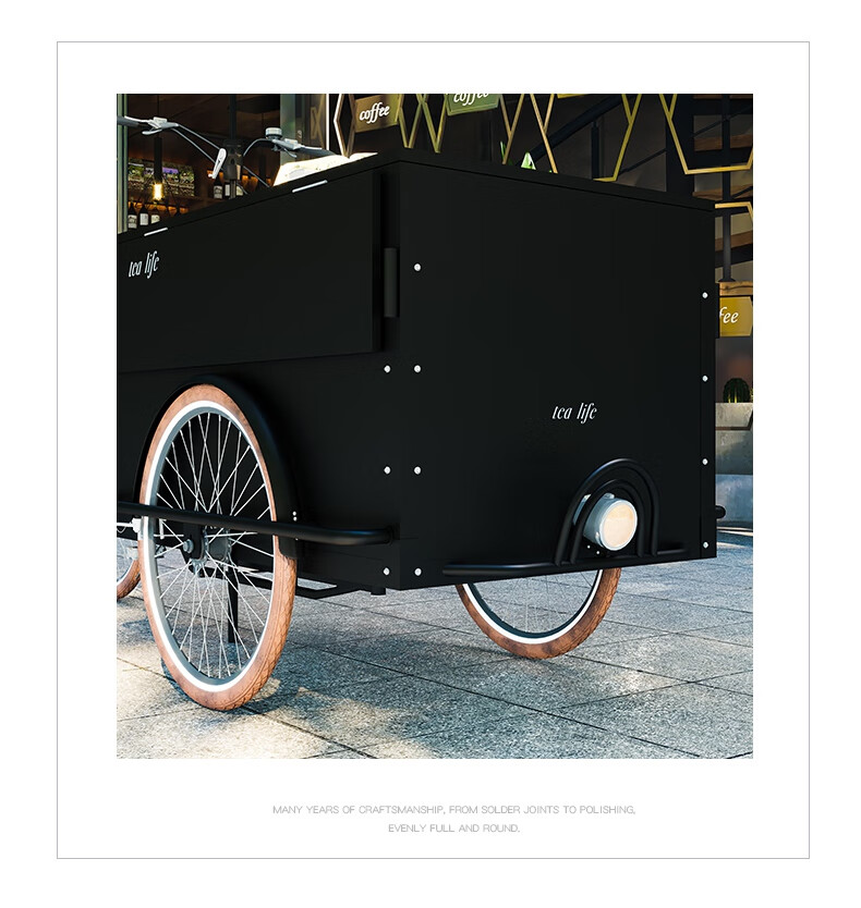 户外可移动售货车流动式景区花车商业展示售卖车倒骑驴三轮摊位车 黑色不带伞(棕色轮子) 官方标配