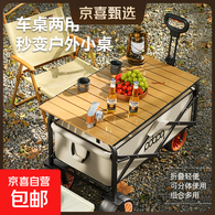 摆摊推车可折叠露营带桌子小吃车商用夜市烤肠冰粉车野餐摆摊神器 坦克轮(米车+木纹桌)