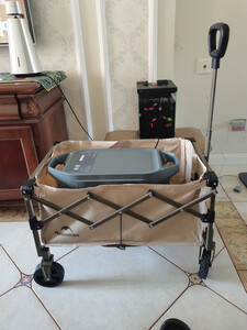 70L带刹车的细轮小车,装正浩2度电户外电源,小车容量刚刚好。
