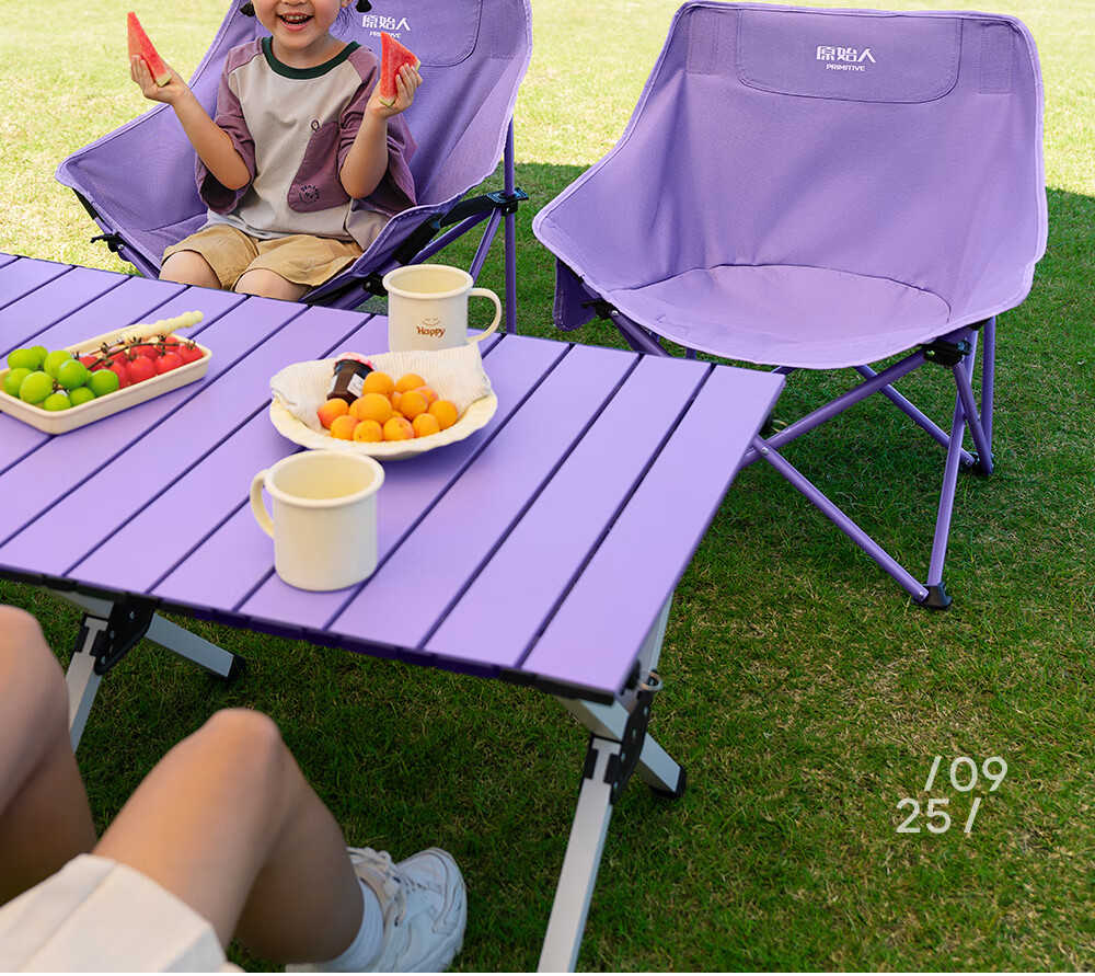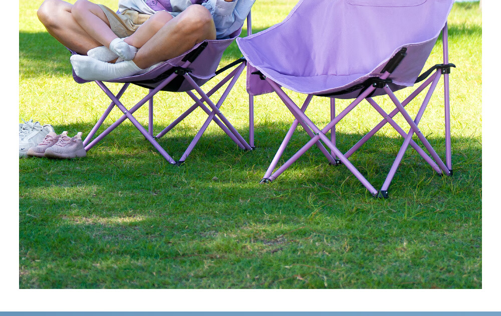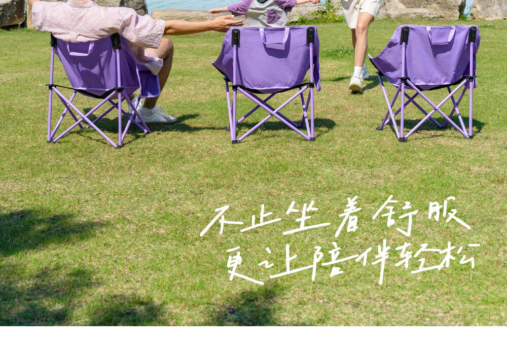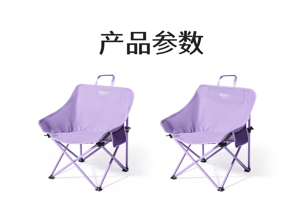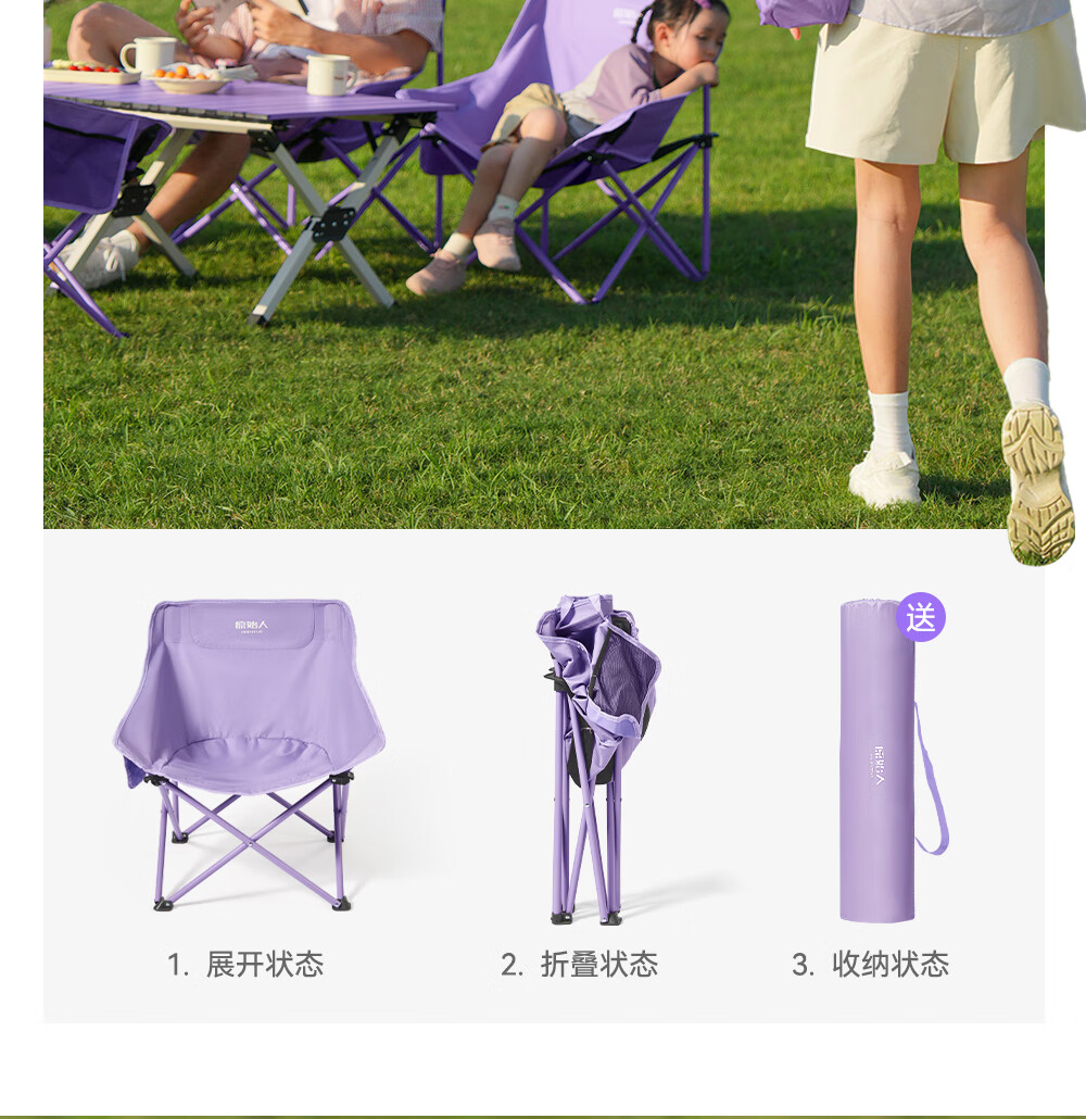 原始人户外折叠椅月亮椅露营椅子沙滩椅折叠凳休闲折叠桌椅套装野餐钓鱼 经典款薄雾紫-绷带加固