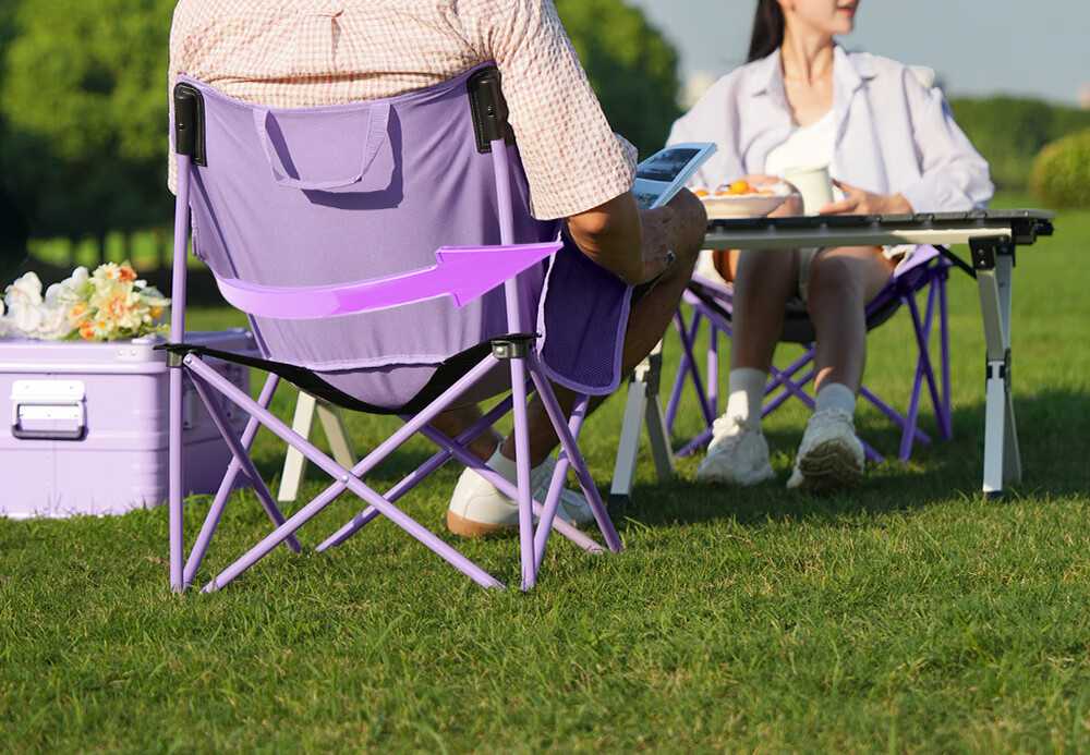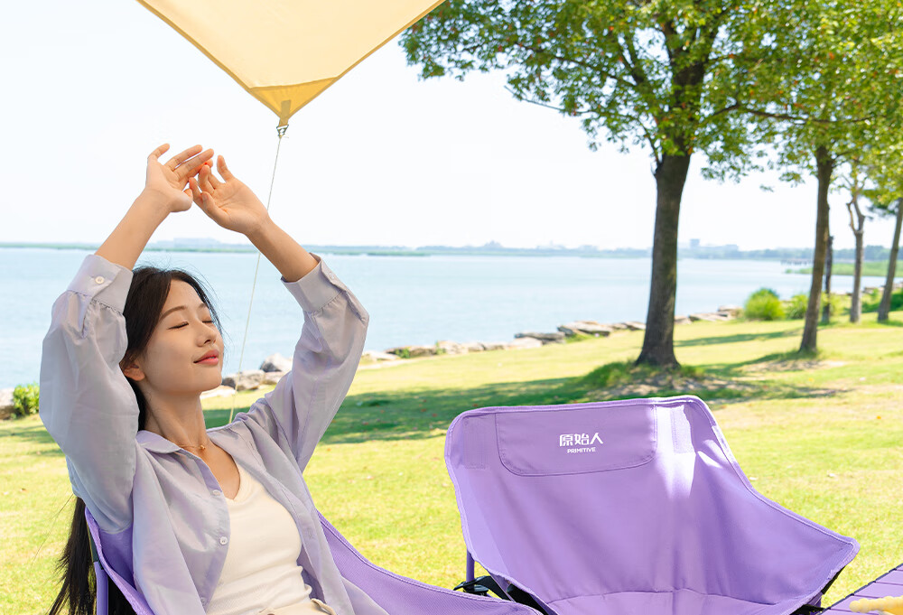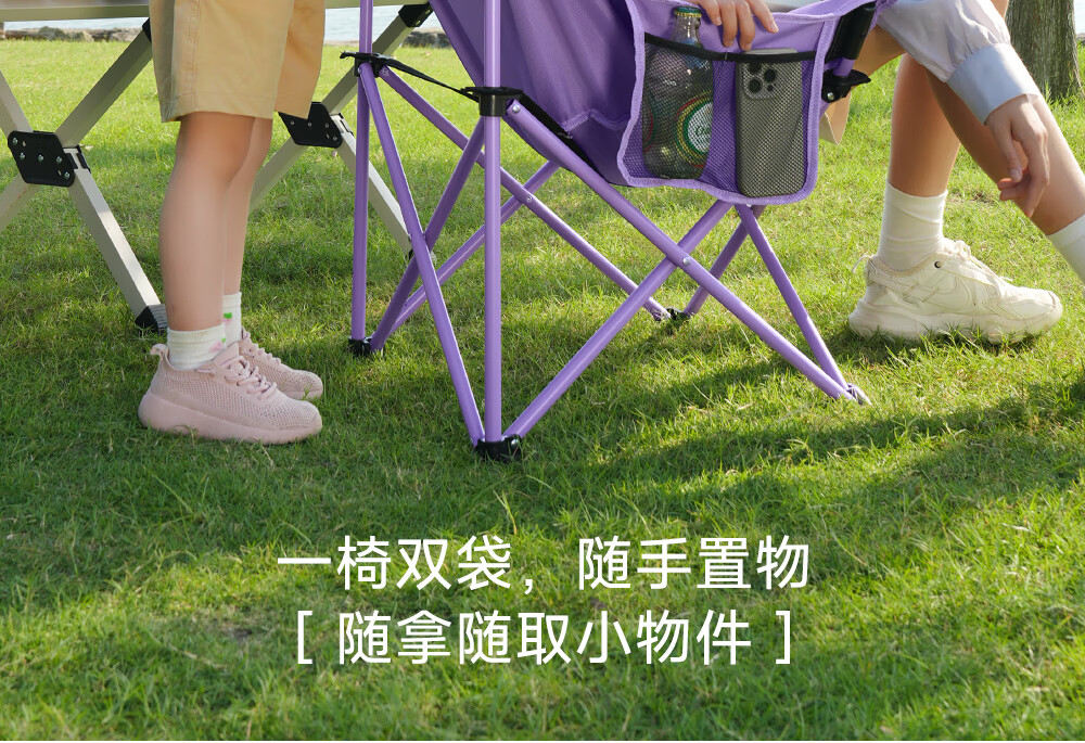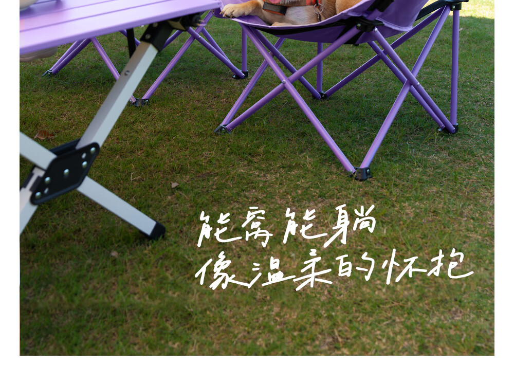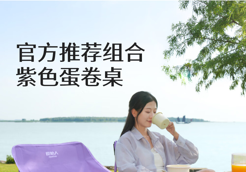 原始人户外折叠椅月亮椅露营椅子沙滩椅折叠凳休闲折叠桌椅套装野餐钓鱼 经典款薄雾紫-绷带加固