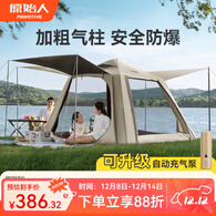 原始人自动充气帐篷户外露营装备全套便携式免搭建遮阳野营防雨过夜防晒 冷钛黑胶奶咖【手动充气】4-6人