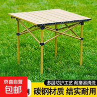 户外折叠椅子便携露营野餐月亮椅子蛋卷桌椅套装写生椅钓鱼椅 米色方桌