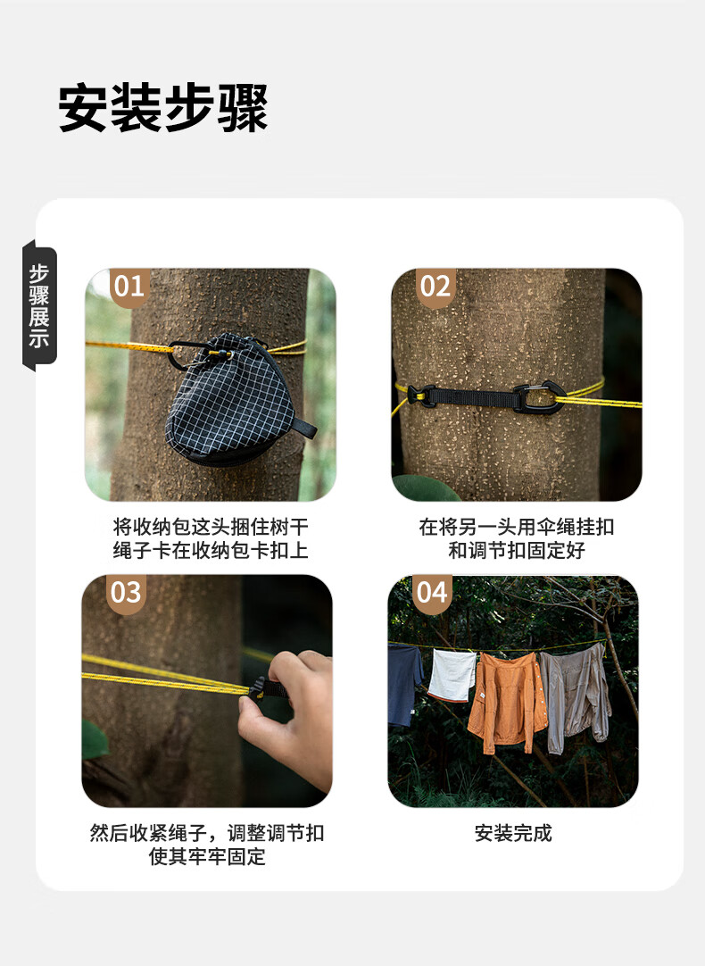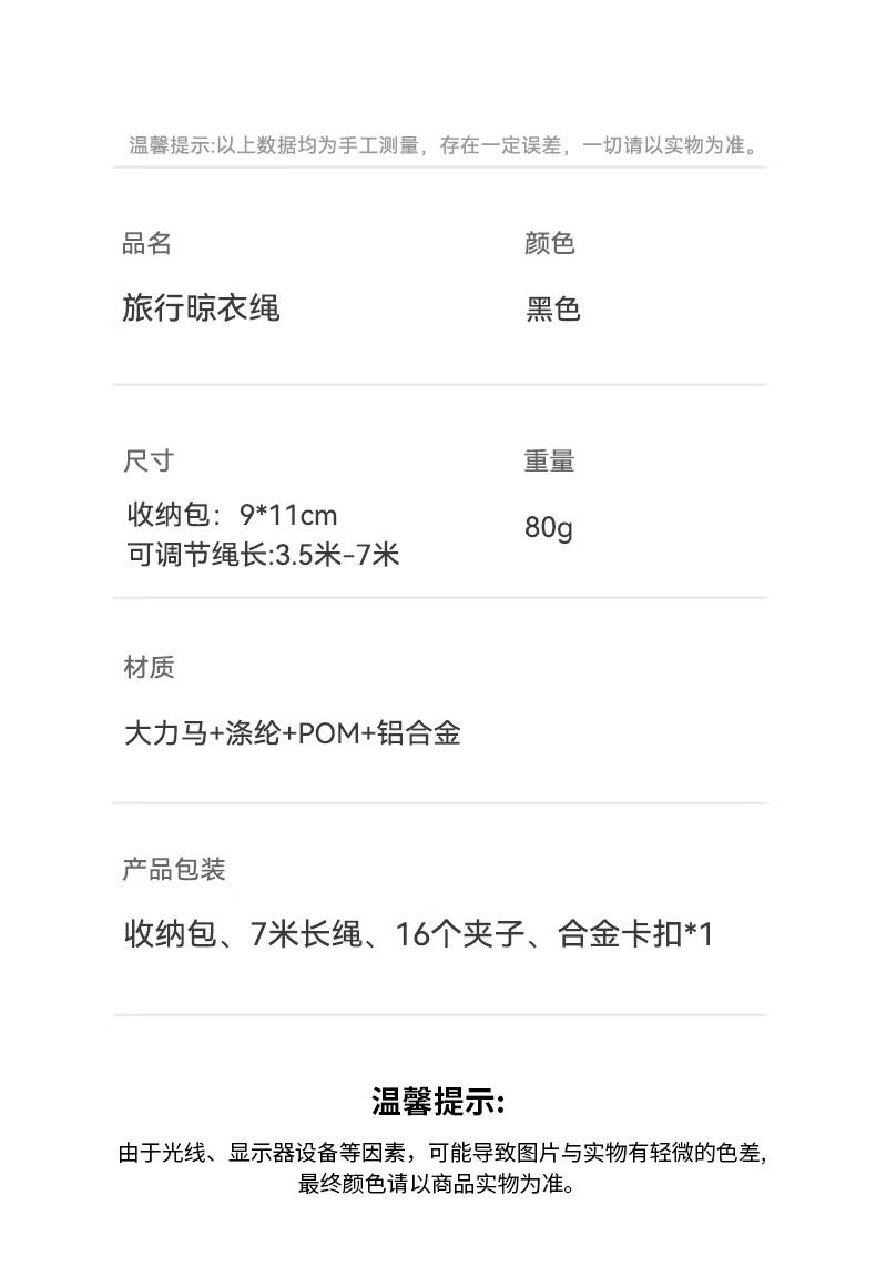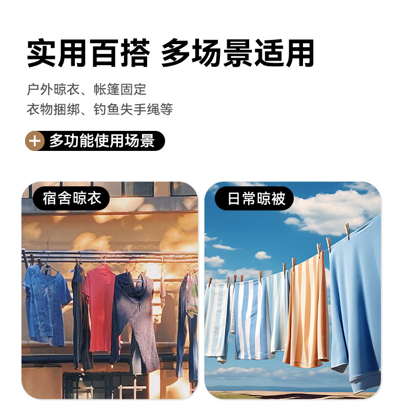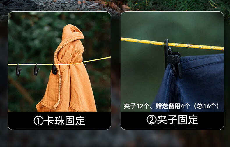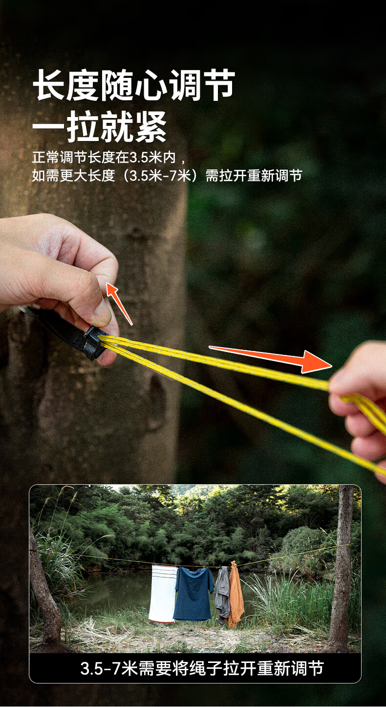 HIKEMAN憨客户外晾衣绳多功能旅行酒店晾晒神器出差便携防风置物挂绳绳子 【可调节长度】晾衣绳
