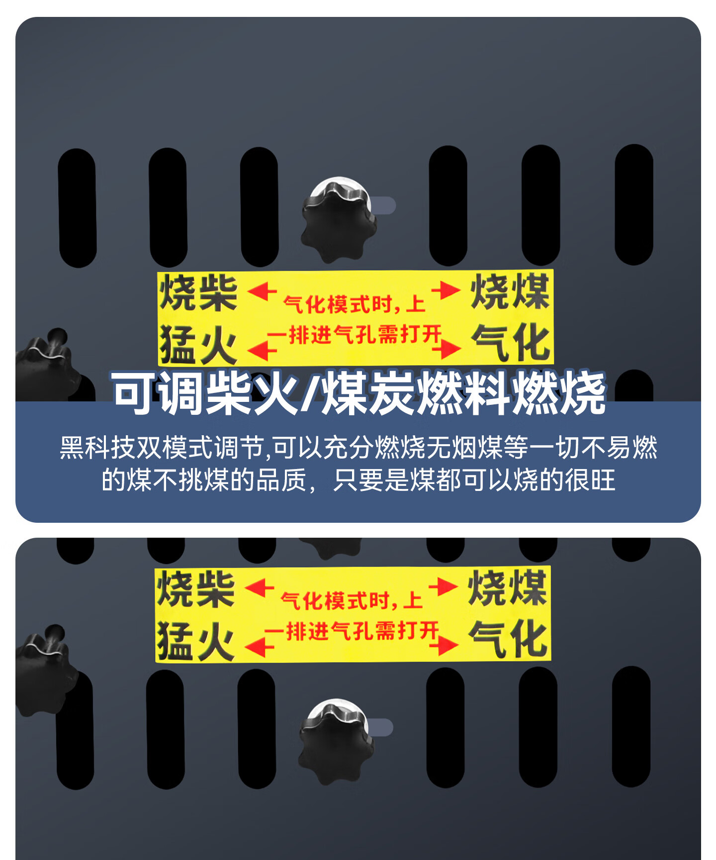 燃烽三次进氧气化炉柴煤两用柴火炉灶特厚农村烤火炉子室内无烟取暖炉 110斤特厚炉体+烟管-越重越耐用