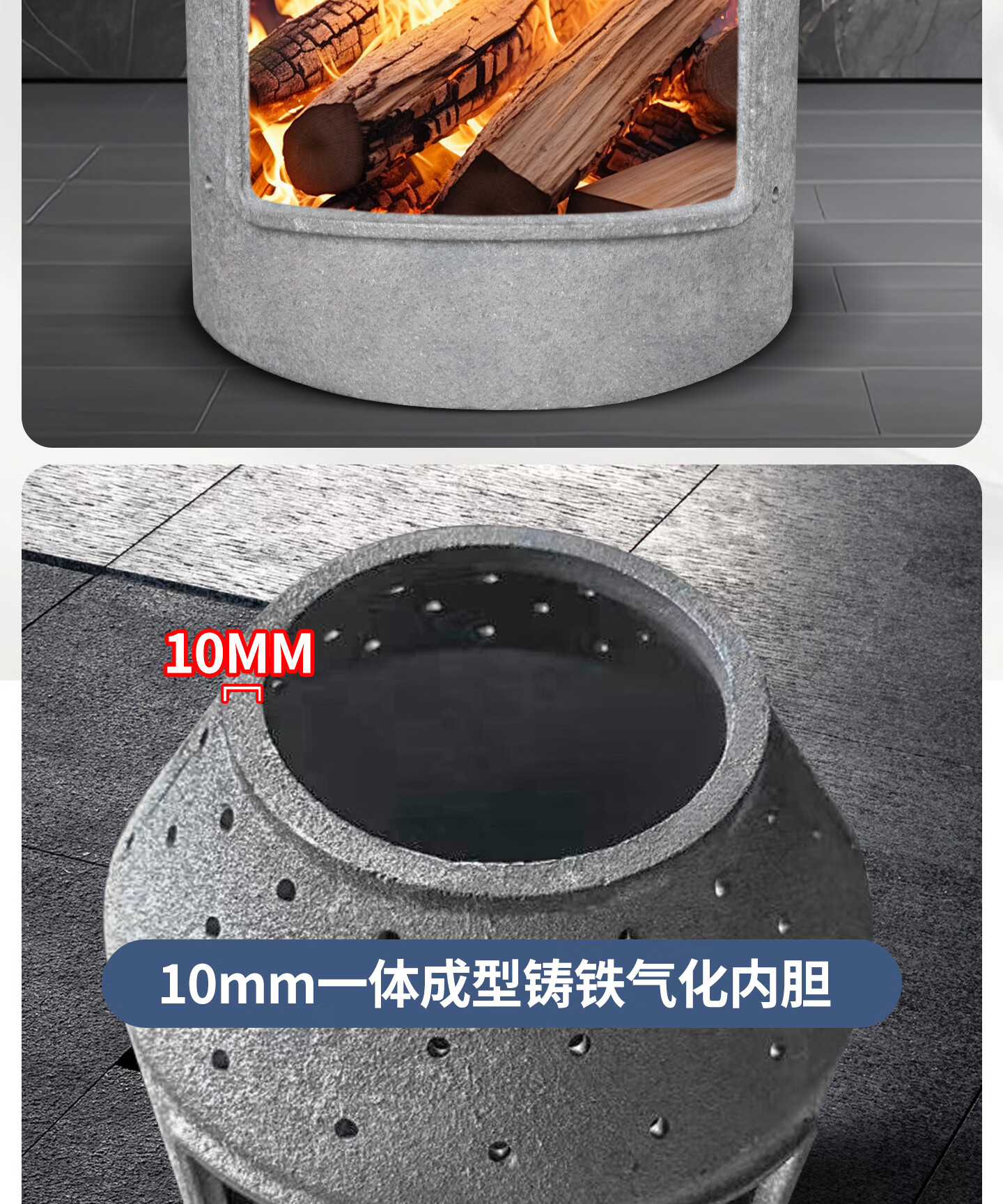 用的确实是铸铁的一体内胆我已经很仔细的用手电筒照着检查了,非常好。做工很好,质量很好,也是烧了非常棒。