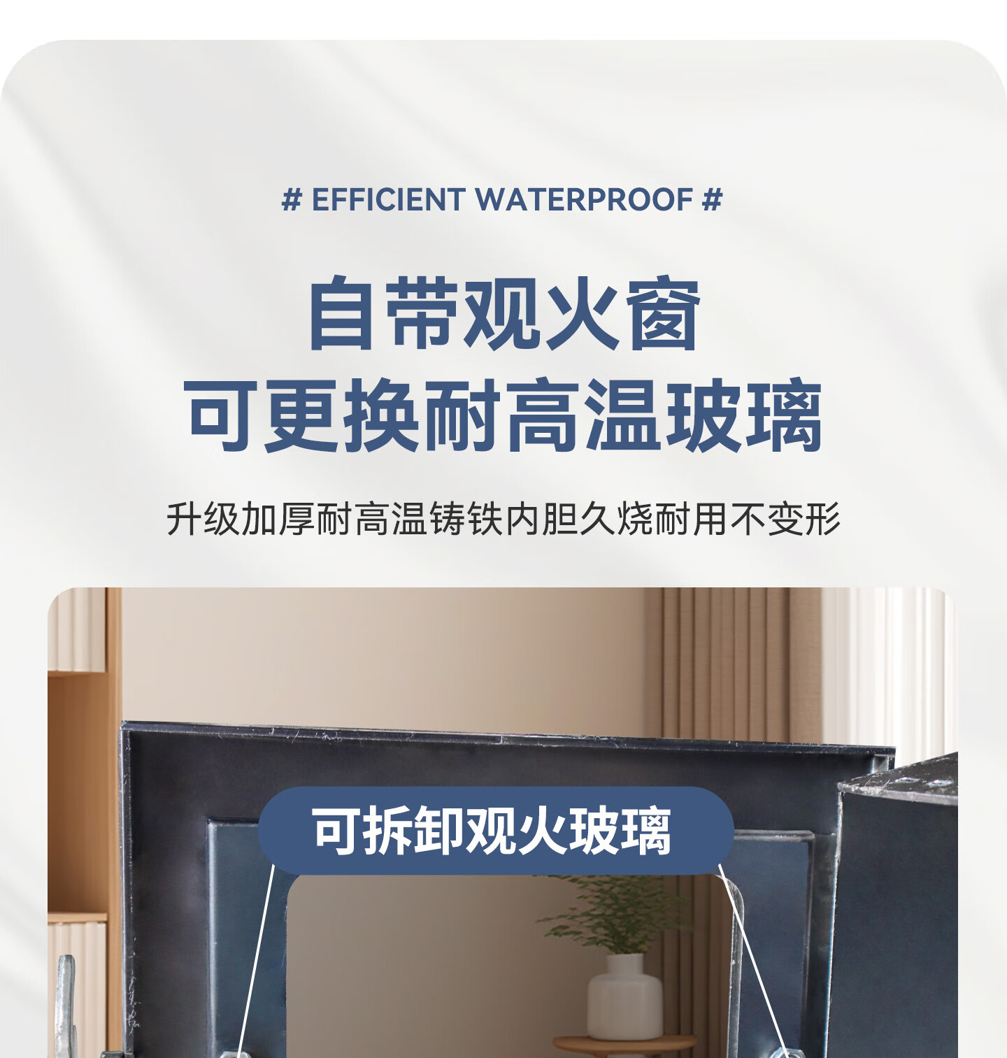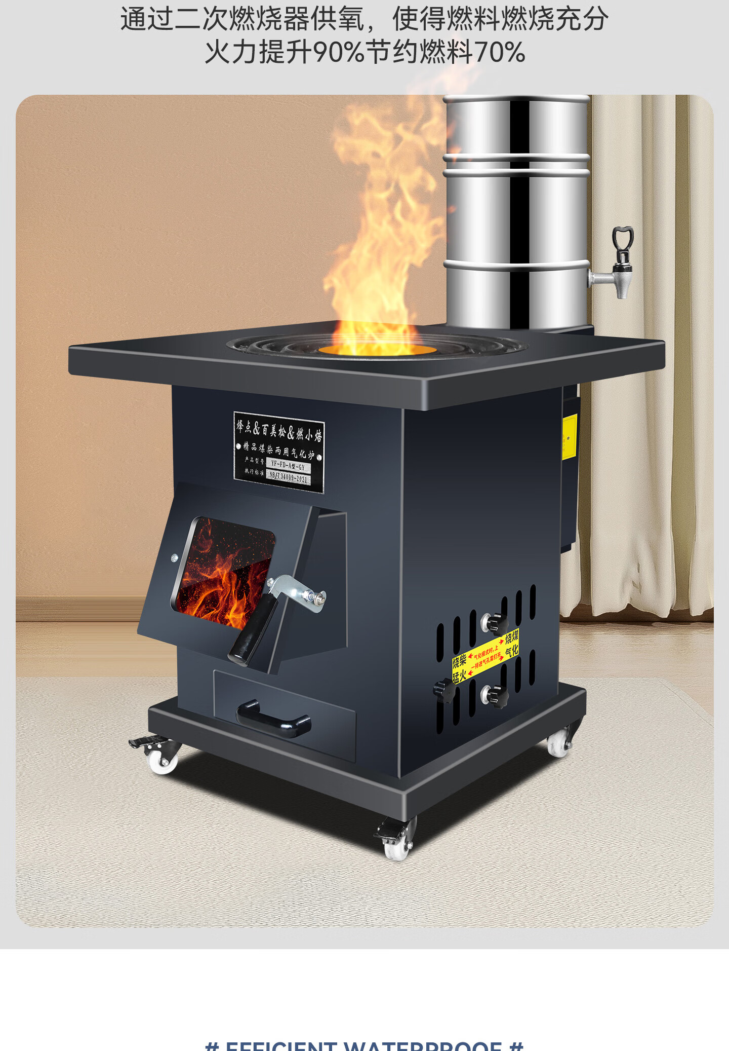 烽点加厚铸铁内胆气化无烟柴火灶室内农村柴煤两用取暖炉烤火冬天木柴 43方刚+水箱+水壶+4米管配件