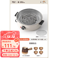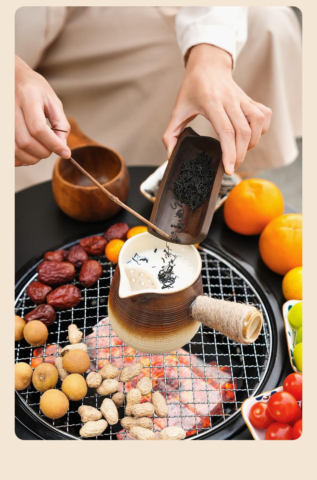 原始人围炉煮茶室内无烟烧烤炉家用室内炉套装电陶炉烧烤炉 山茶围炉+500ML罐罐壶+花瓣杯*4