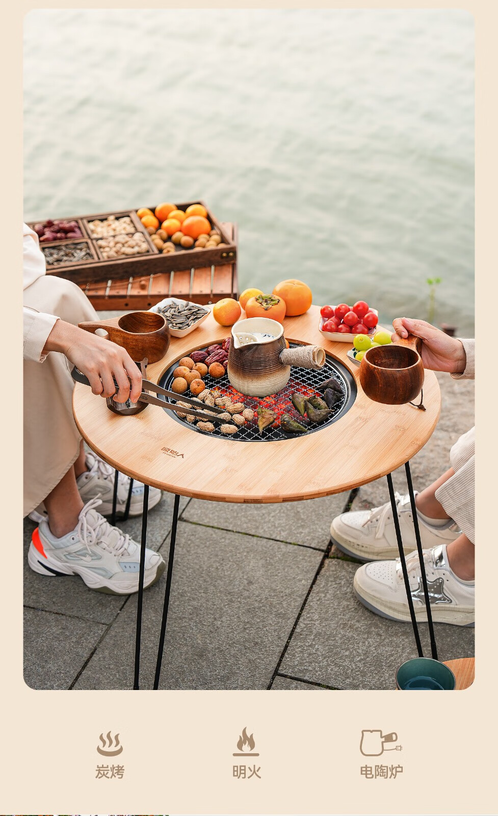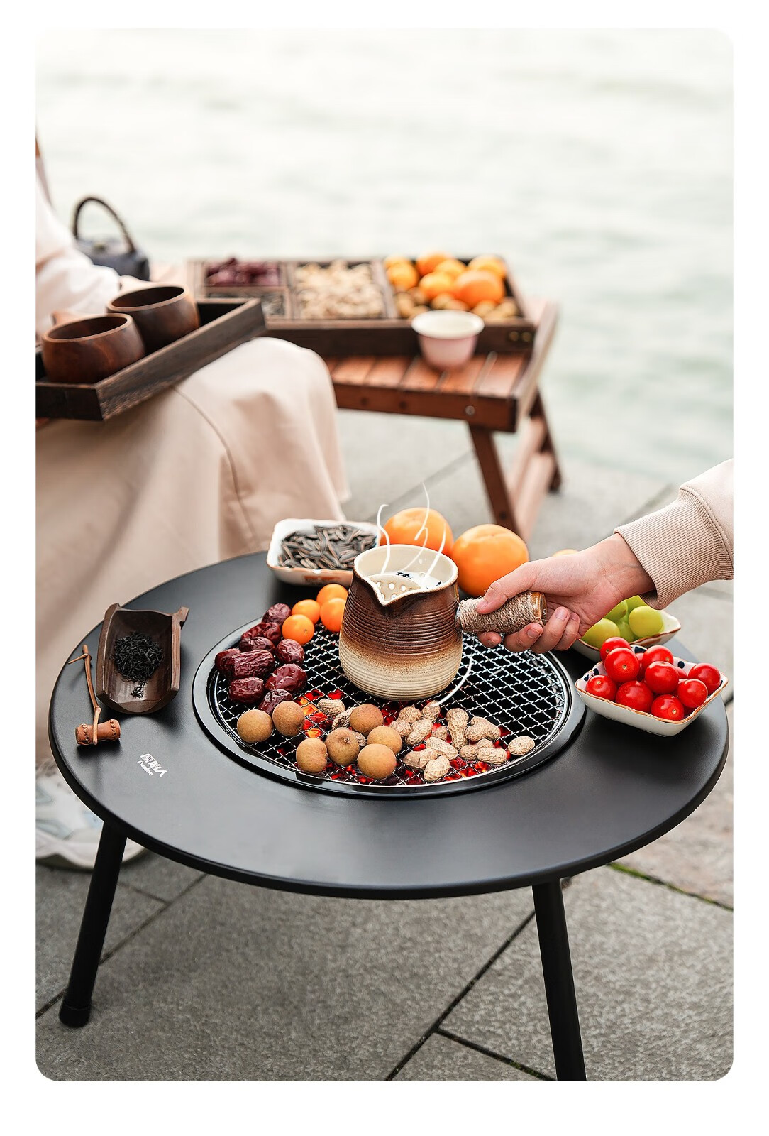Naturehike挪客墨烟桌面圆形围炉煮茶烧烤架烤肉盆户外露营便携装备公园野餐 煎烤两用款+方形速燃炭1盒(12枚/盒)