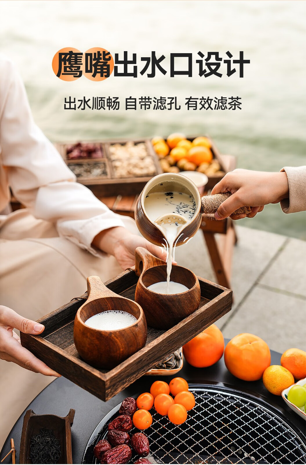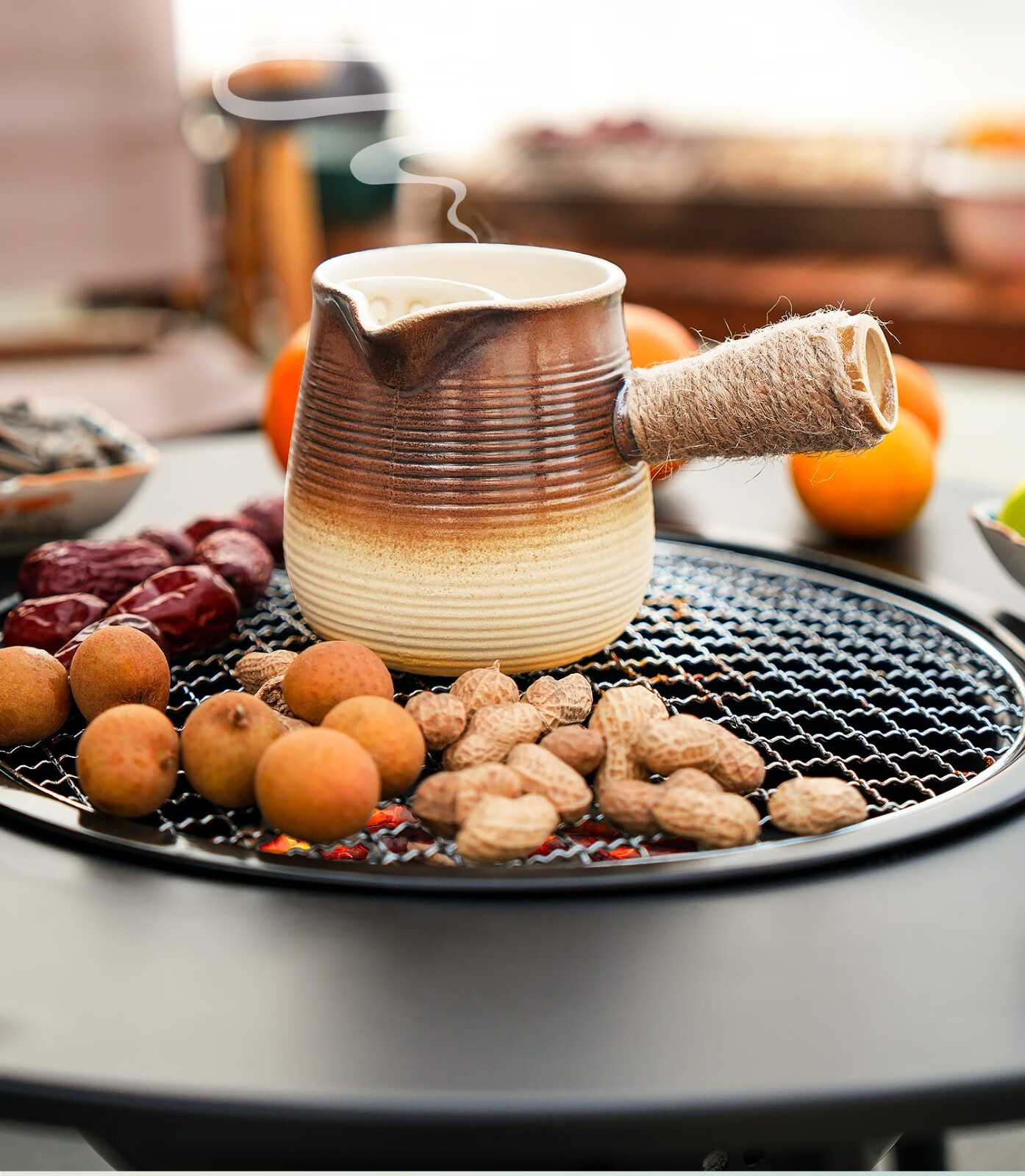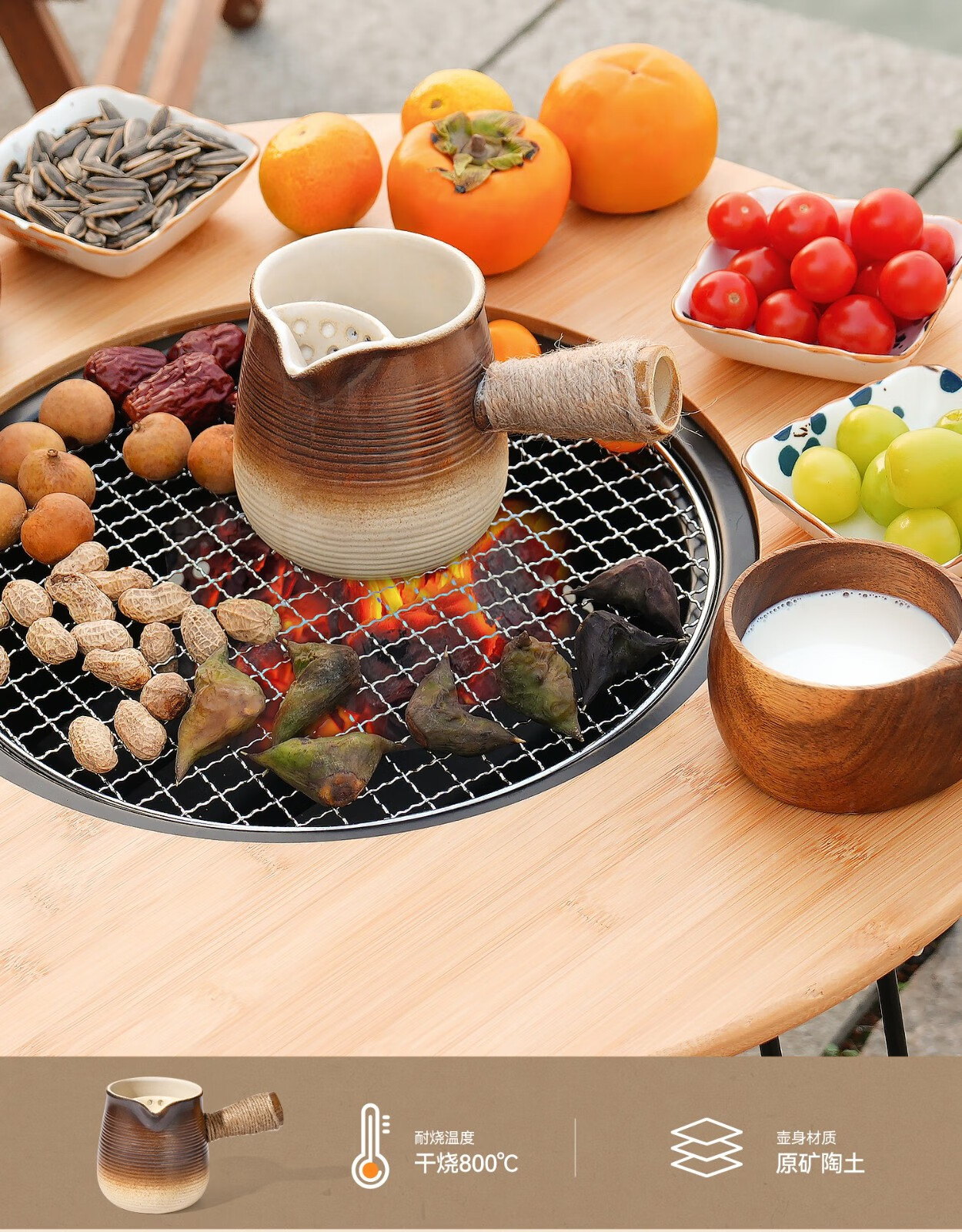 原始人围炉煮茶器具罐罐茶煮茶壶家用室内烤奶茶罐摆摊烤火炉水具 500ml烤奶茶罐-米白