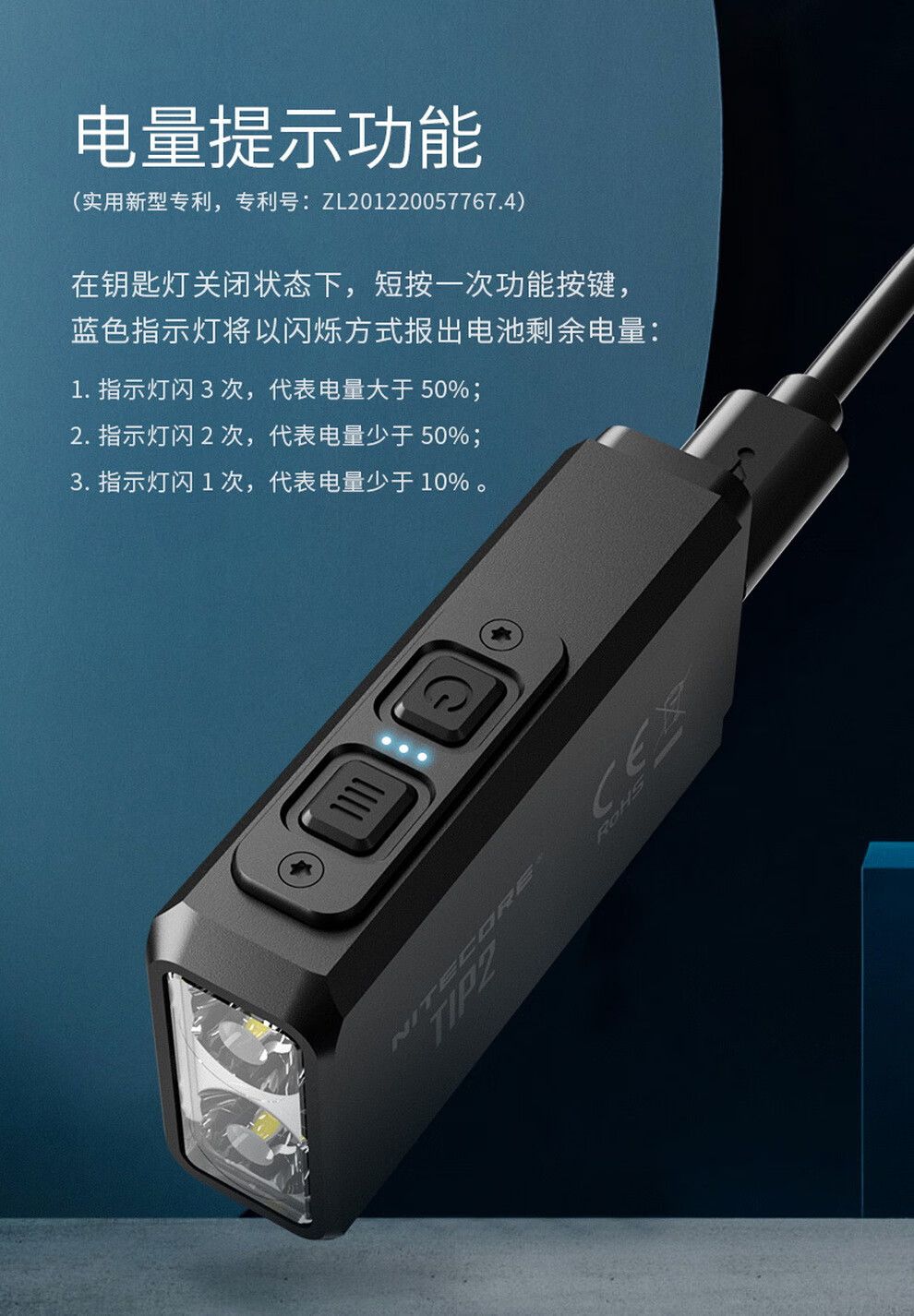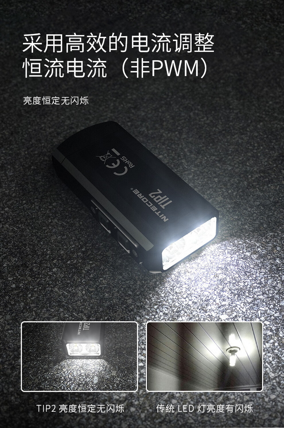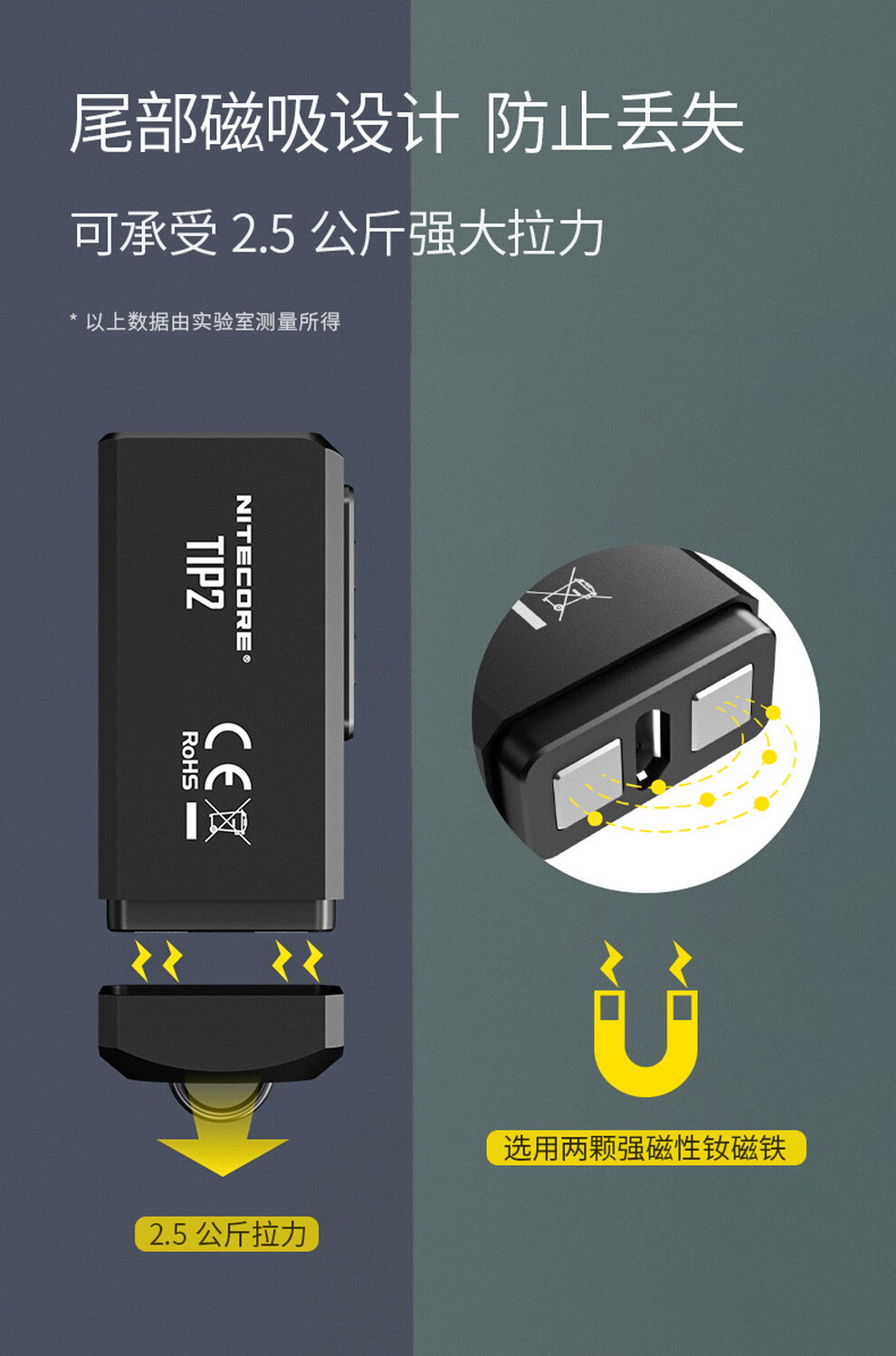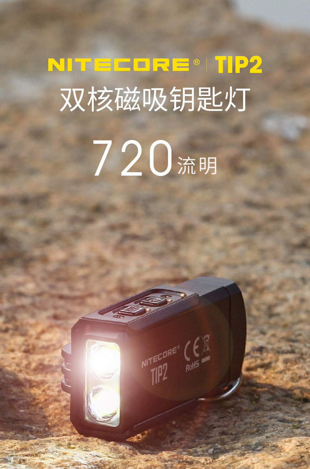奈特科尔(NITECORE)手电筒TIP2强光远射充电迷你双核LED钥匙扣多功能磁吸金属工作灯 TIP2标配(MICRO-USB充电)