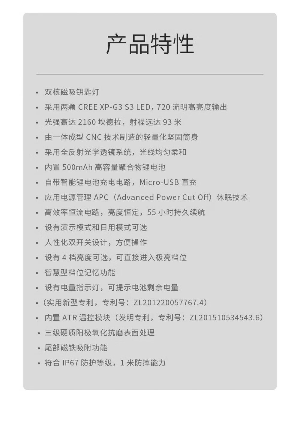 这款手电买了第二个了,非常不错的一款产品,超级小巧,非常轻,想象不到的亮度,防水性能也很棒,日常生活用足够,性价比非常高。