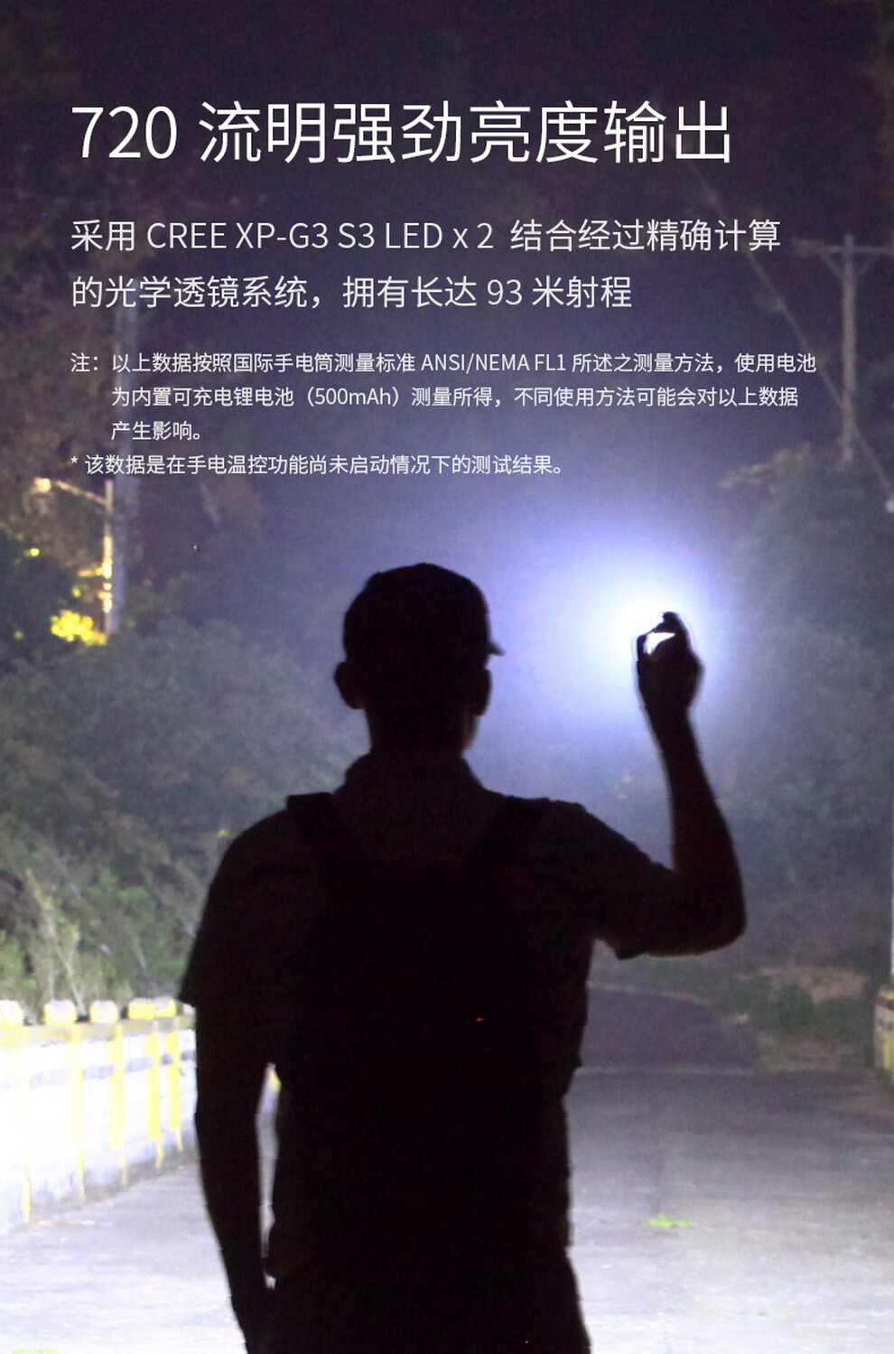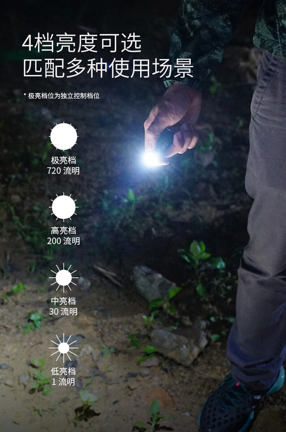 老筒友最近又种草了便携的小手电,经过一番功课后终于敲定购买这只双眼小强。使用效果不错,最亮档非常刺眼,日用档三档设计较合理,还可以USB充电,加尾部的磁力吸附应用的场景很多,电量也比竞争对手强不少。