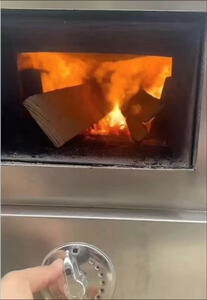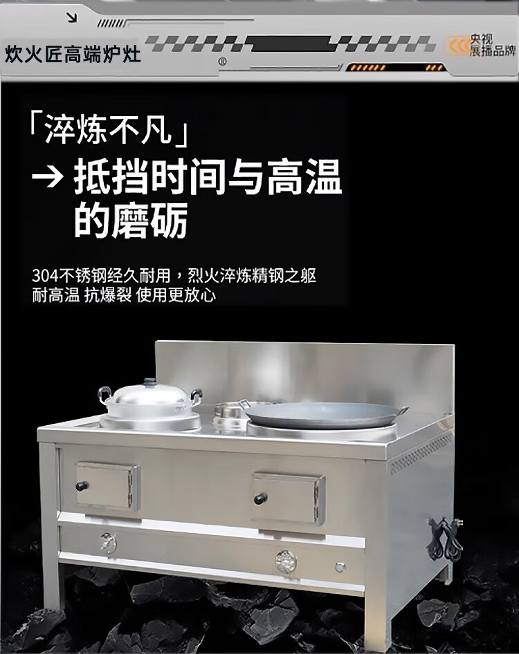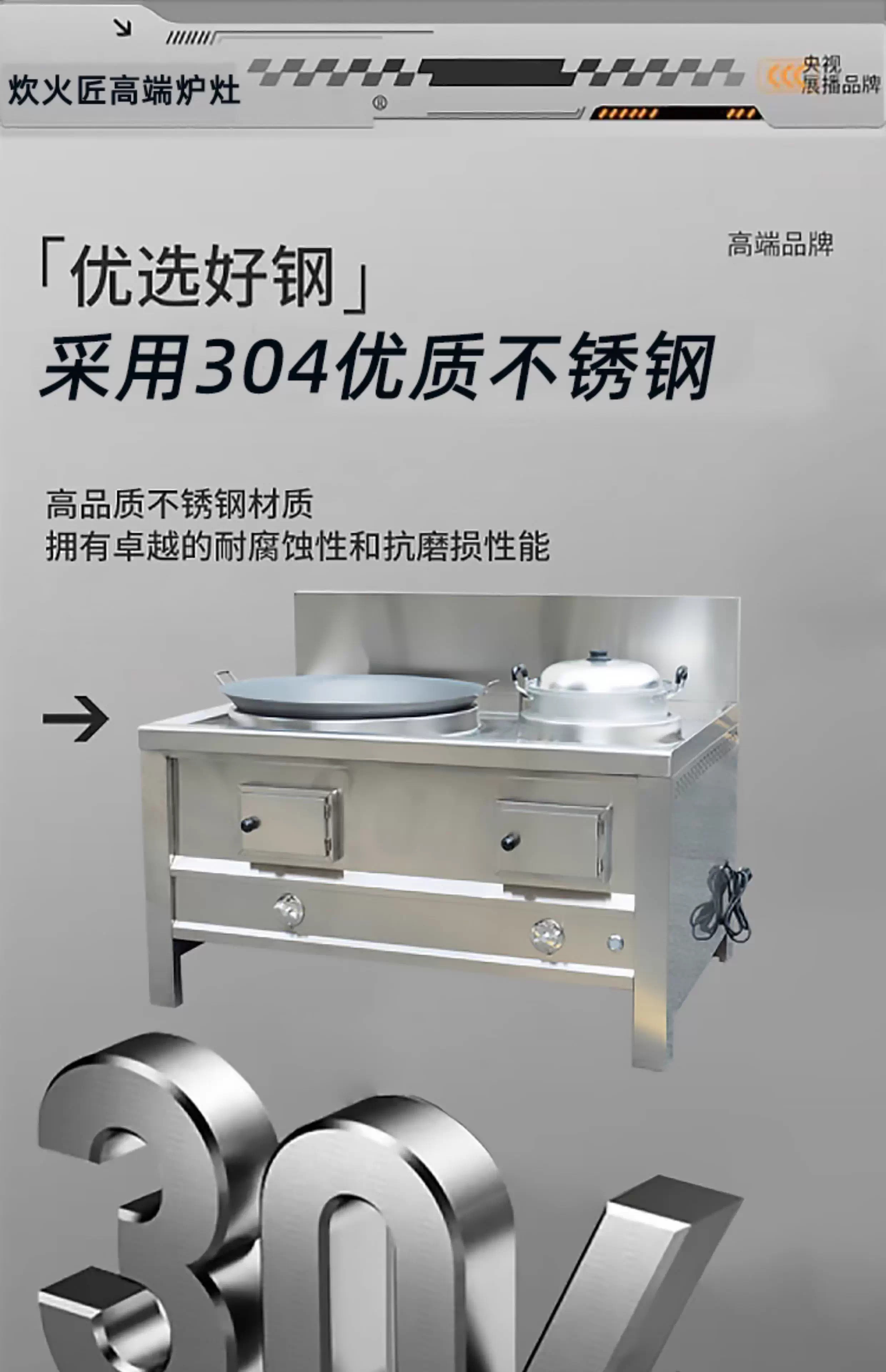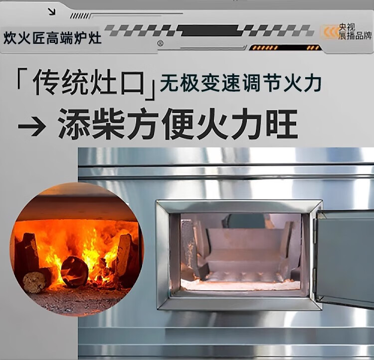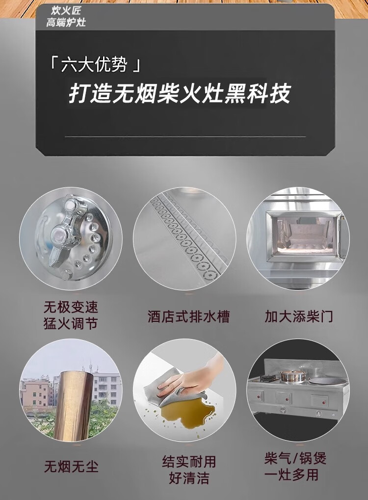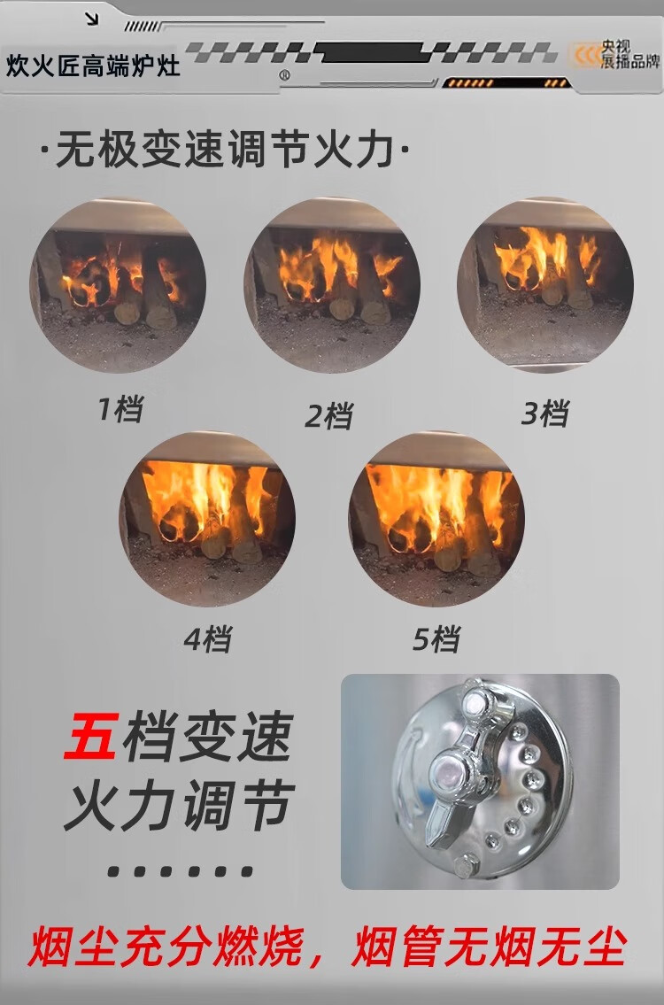 收到的灶膛和客服说的一样,工业风机可以调节火力,燃烧很充分,几天都不用清理,灰渣清理也是非常简单,拿灰铲铲一下出来就行。不锈钢灶台很厚实,可以说一分钱一分货!