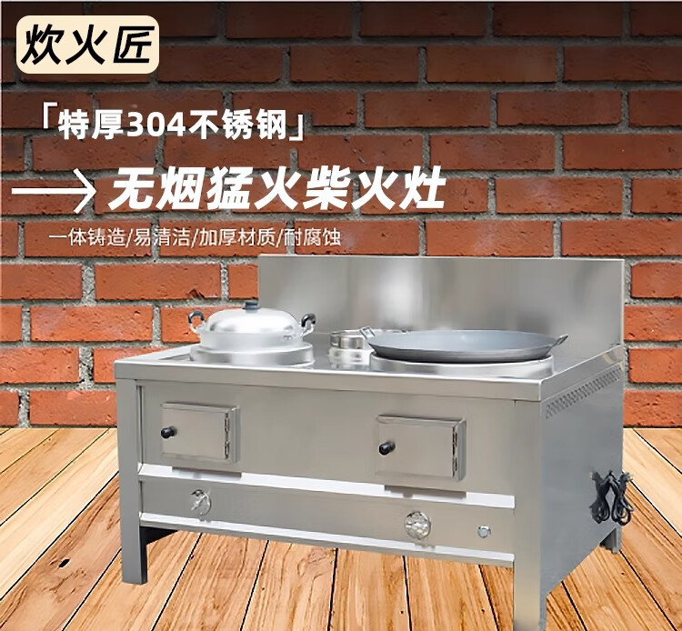 炊火匠新型无烟猛火柴火灶家用商用烧木柴室内户外农村不锈钢大锅台定制 柴气两用-左灶右气 60cm灶+燃气