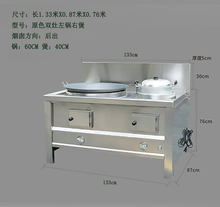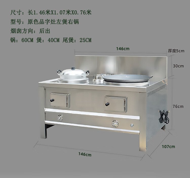 柏潮新款加厚不锈钢农村别墅家用柴火炉灶双灶水池户外烧木柴移动大锅 (左排烟)双灶64+56