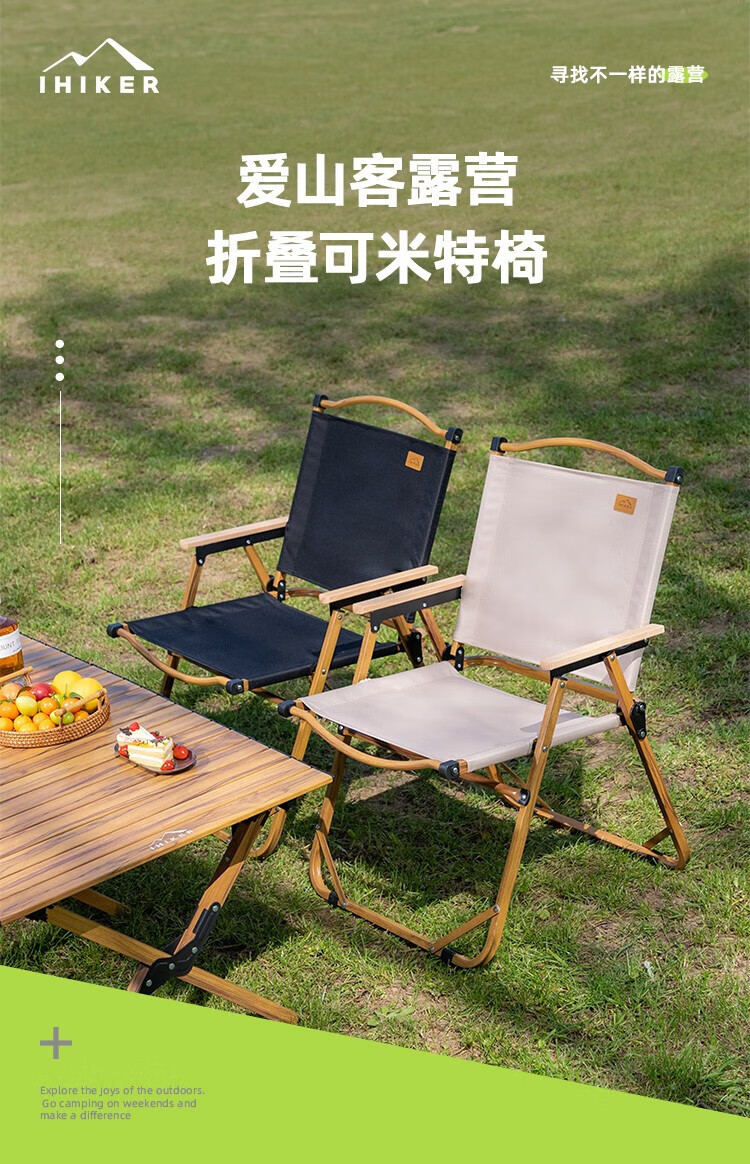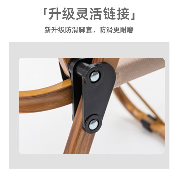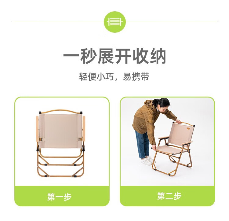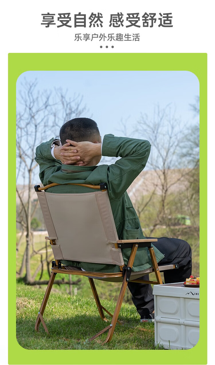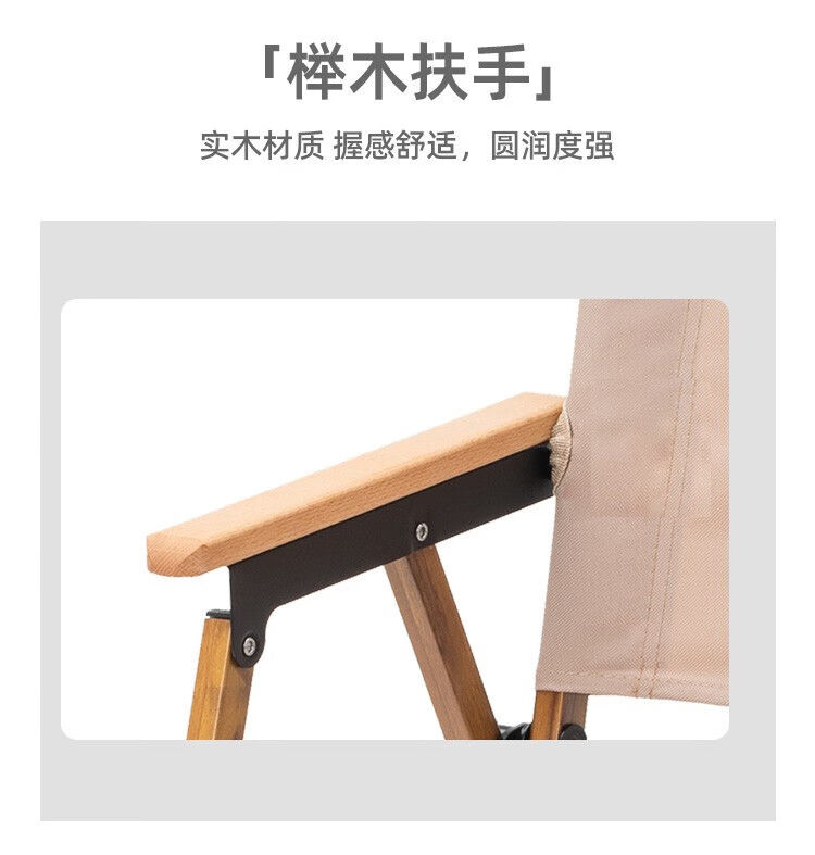 户外折叠椅便携式野餐克米特椅超轻钓鱼椅露营用品装备椅沙滩桌椅 【特大号-卡其色】-榉木扶手