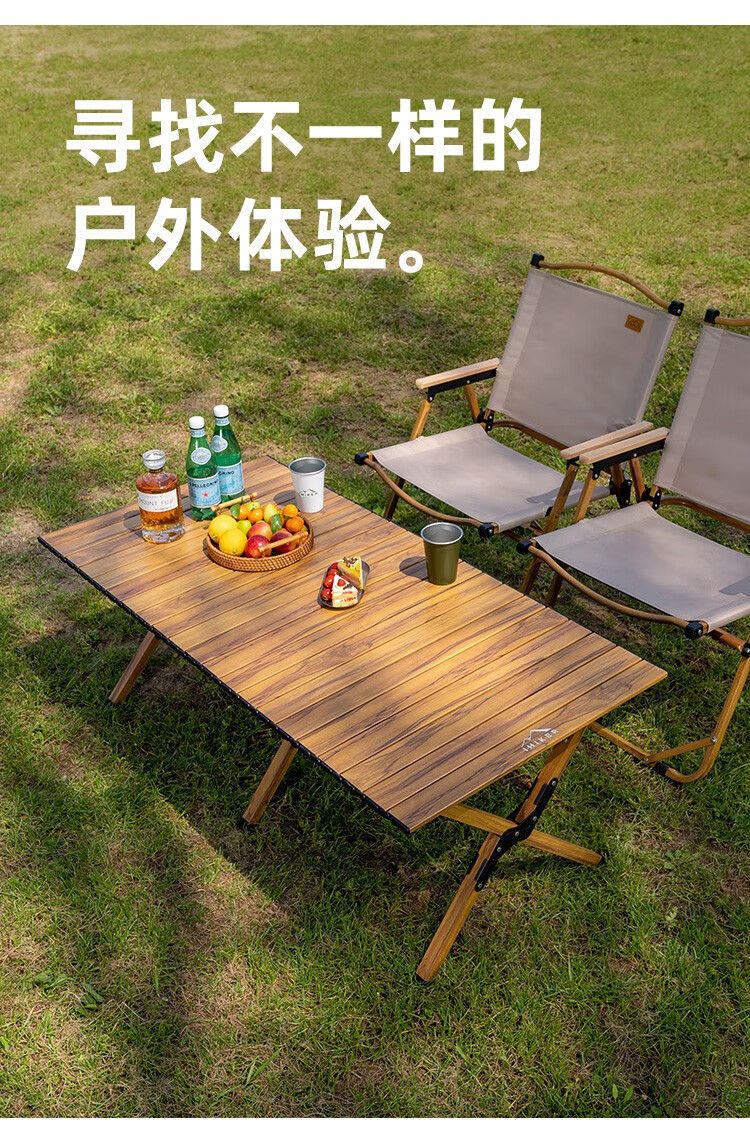 Guide Series户外铝合金折叠桌露营桌便携升降沙滩烧烤桌加宽桌自驾游车载桌 新 加宽金属 木纹黑色