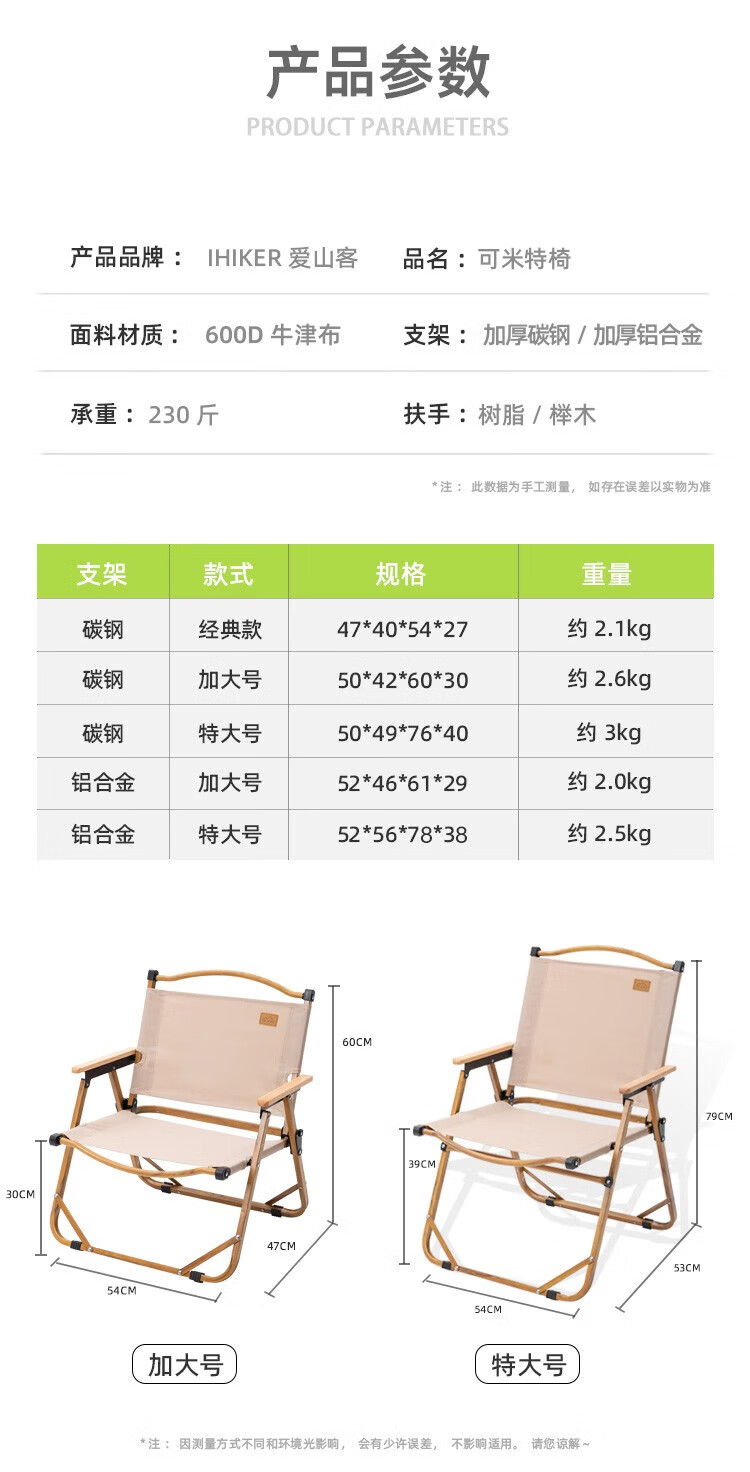 清系 户外折叠椅克米特椅露营椅子户外椅子折叠便携露营 沙滩椅 【树脂扶手碳钢款】大号卡其色