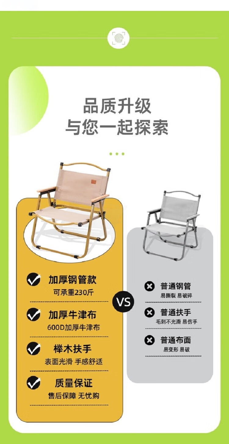 这款折叠椅真的超实用,带出去野餐超方便,收起来不占地方。坐上去很稳当,布料也结实,颜色也好看。和朋友一起享受户外时光!