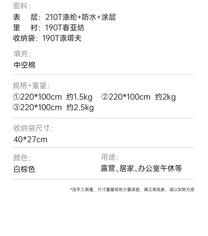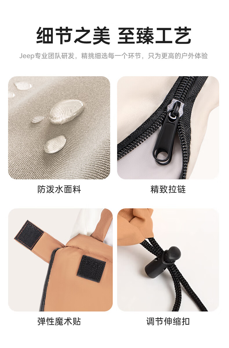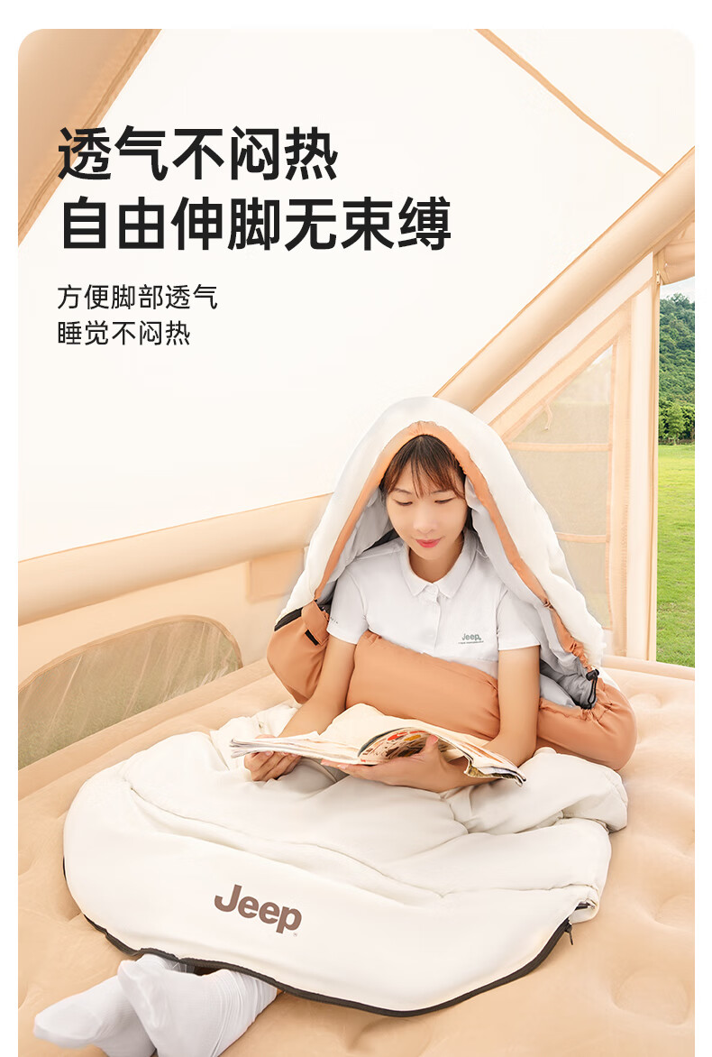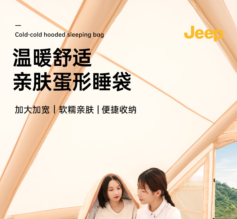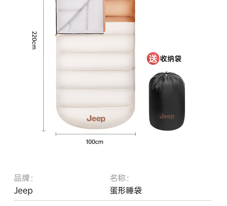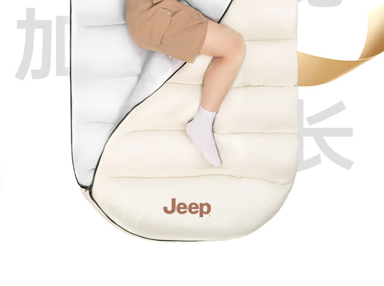 JEEP户外睡袋露营便携式加厚睡袋大人成人秋冬季亲肤棉信封式蛋形睡袋 2KG白棕