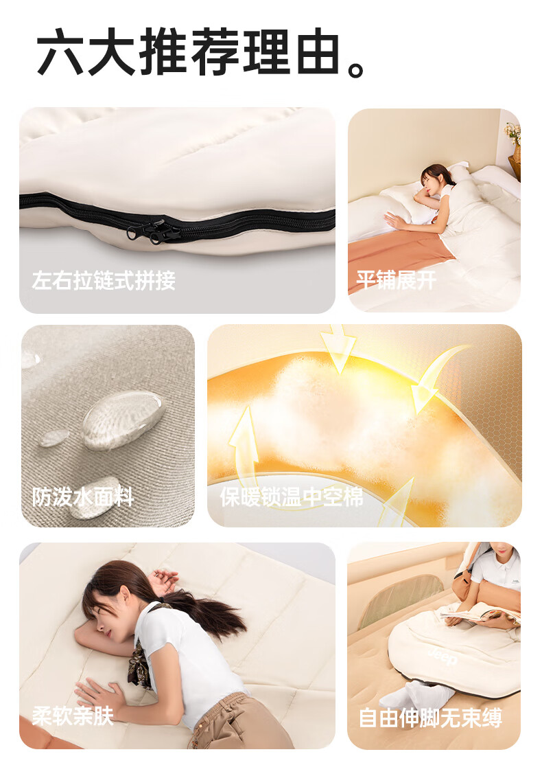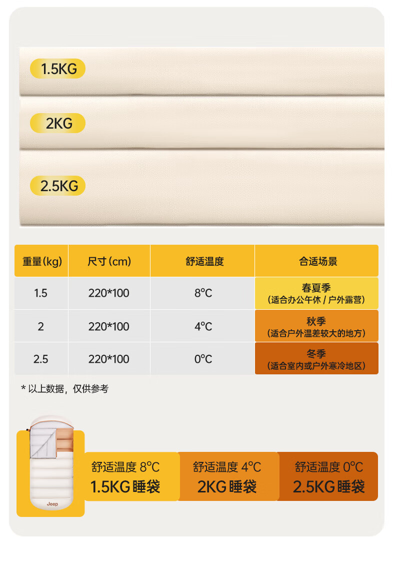 JEEP睡袋户外露营大人冬季冬天加厚防寒被子便携式隔脏四季通用款 升级款(1.8kg加固不跑棉)舒适温度1-6度