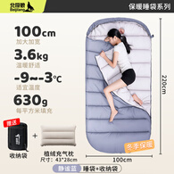 北极狼户外睡袋成年人加大加宽棉睡袋露营午休单人四季通用款春秋冬季 3.6kg静谧灰【-9℃--3℃】加宽1米