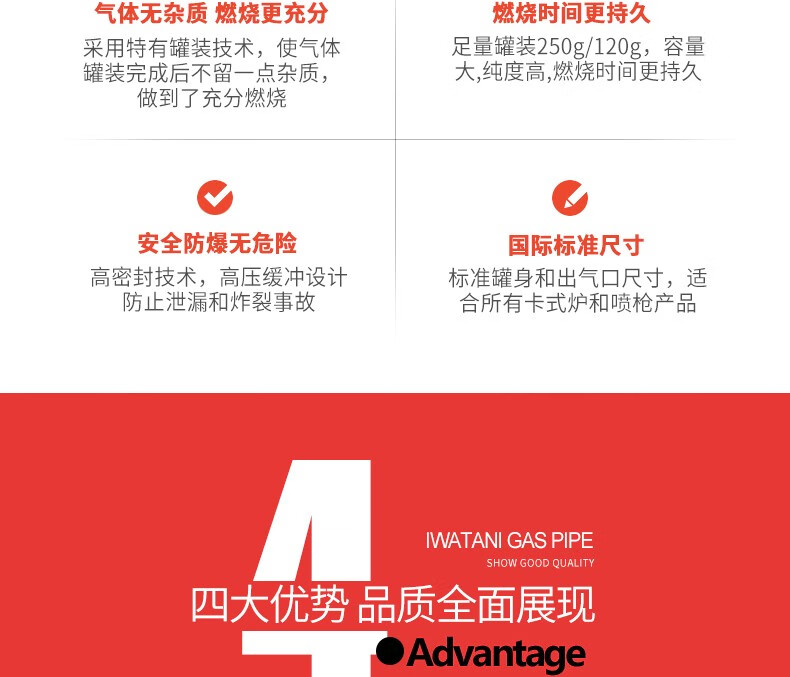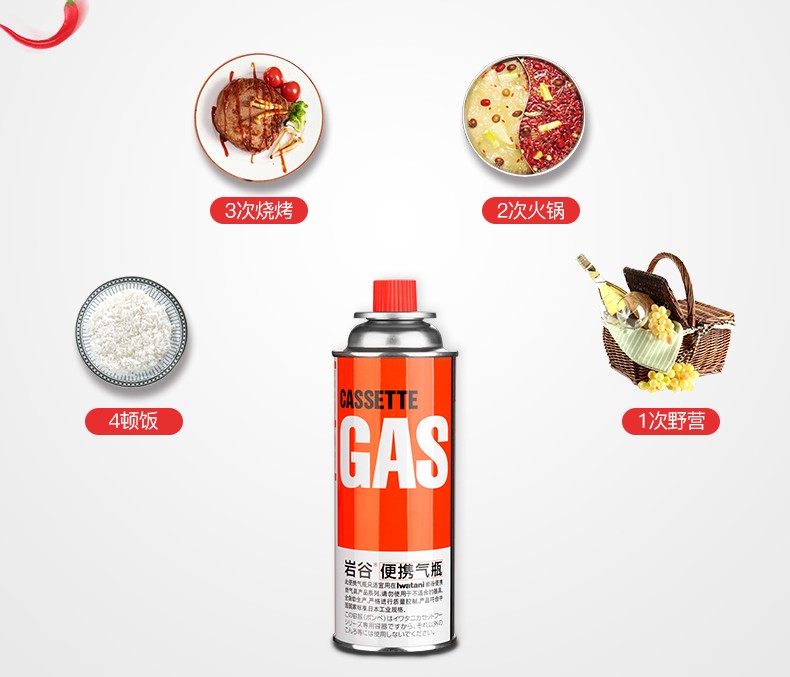 一个袋子包装的很说句岩谷气罐我放3年依旧可以正常用买杂牌子气罐后买早漏光都是正品。一般品牌的卡式炉都内置安全防爆装置,防止气罐错位装置,煮火锅,烧烤是绝对一流的,室内,户外都得心应手,其实和家用的煤气灶烹饪没有太的区别,但比家用的煤气灶更加便捷。岩谷的我一直用,绝对是最好的。好,里面4瓶气,打算过年的时候用的,希望耐用,之后打算继续购买,价格便宜的时候可以适当囤一些,但是也不能买太多