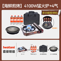岩谷(Iwatani)卡式炉4.1kw大火力猛火灶家用户外炉具瓦斯炉烤盘套装燃气炉子 ZA-41+05烤肉盘+4气+一体包