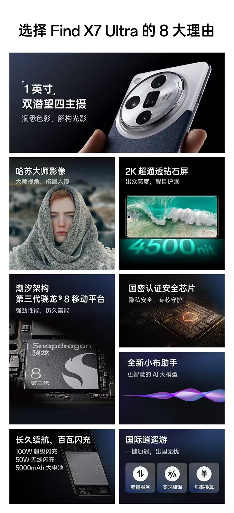 OPPOFind X7 Ultra 【全新未拆封未激活+全国联保】5G 游戏 拍照 电竞 第三代骁龙8 1英寸 AI手机 大漠银月 16GB+512GB