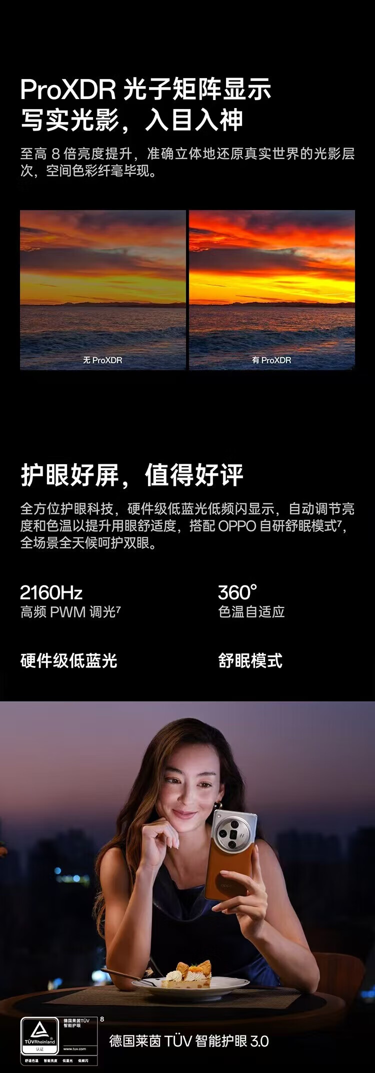 LTPO屏幕;德国莱茵护眼;高频PWM调光;SGS认证;Display Mate认证;Display Mate认证;LTPO屏幕