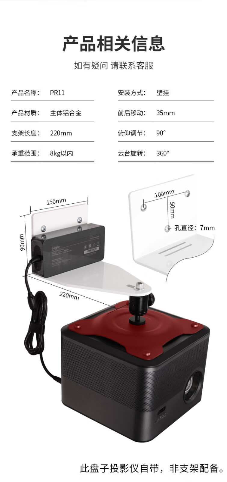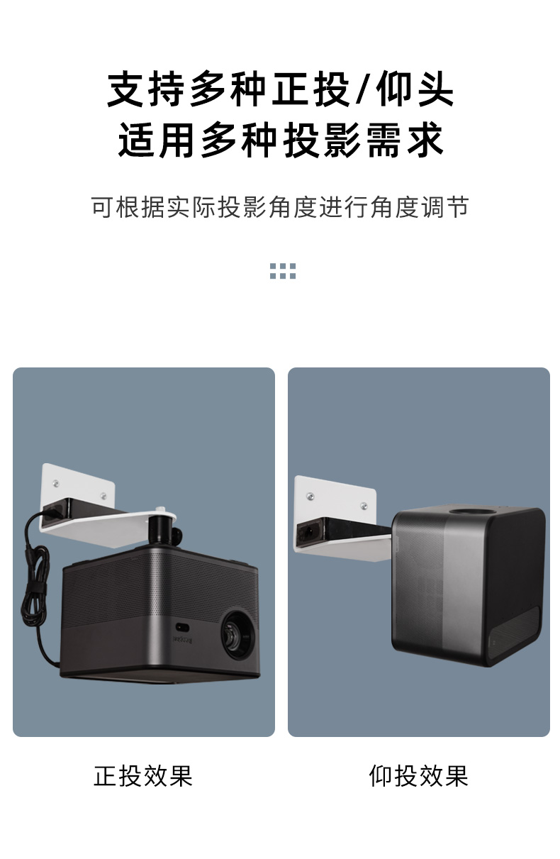 悠视 PR11新款投影仪支架壁挂单孔位正投云台万向投影机架子适配 极米 坚果 小米 大眼橙投影仪架子 PR11 壁挂款白色