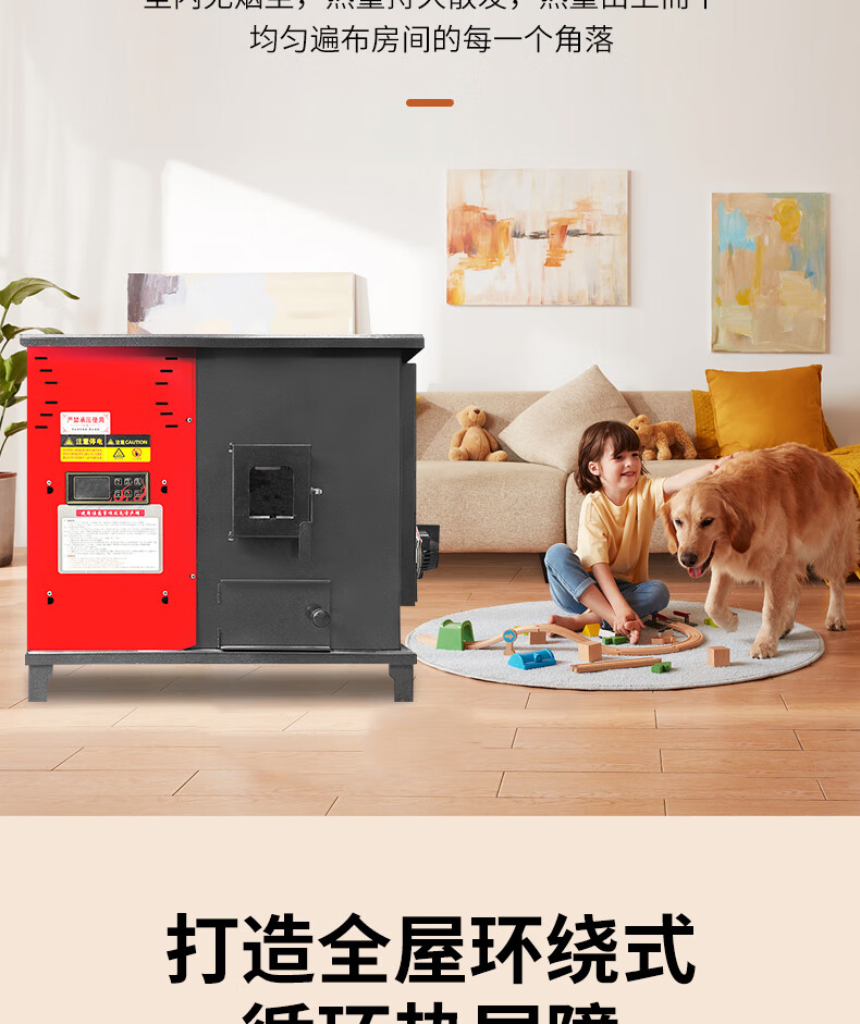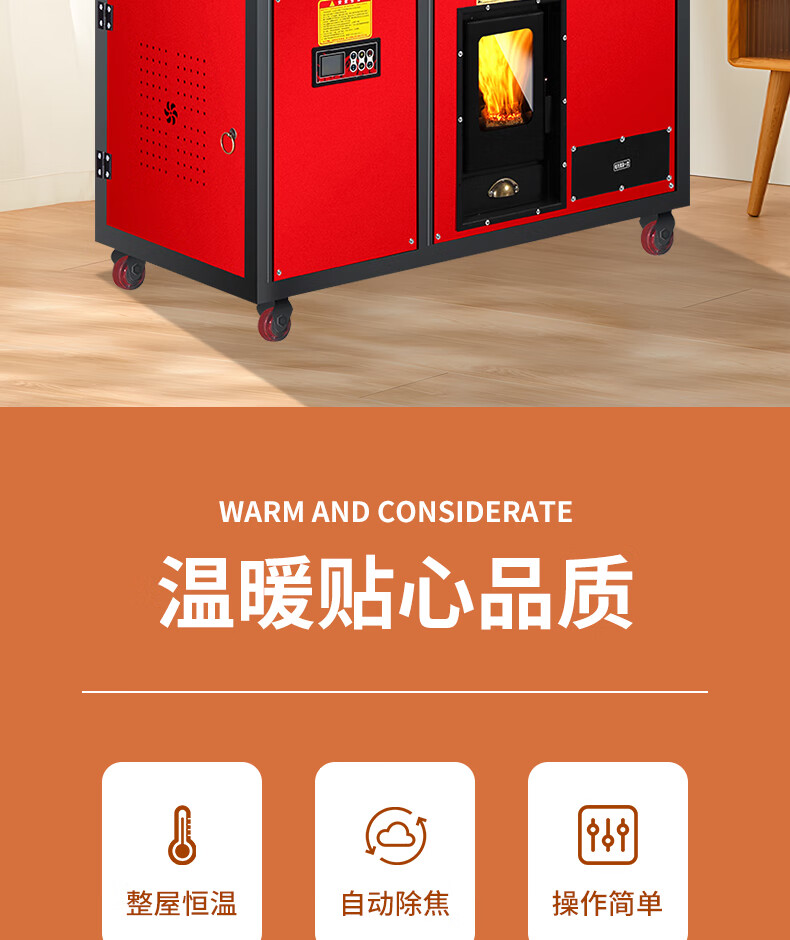 能师傅(送货上门)颗粒取暖炉全自动生物质燃料风暖节能环保商用自动除焦 80型【可烧水】颗粒木材两用