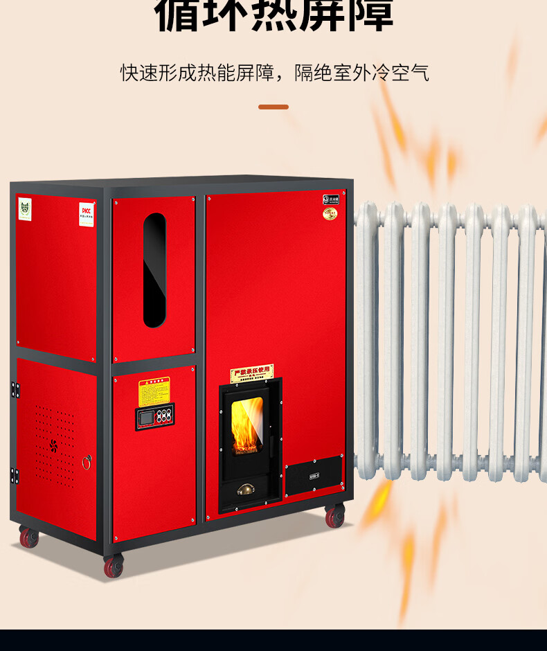 丰强鸿生物质颗粒取暖炉带暖气片水暖家用地暖智能全自动水暖家用室内 80型水暖炉【炊事取暖两用】