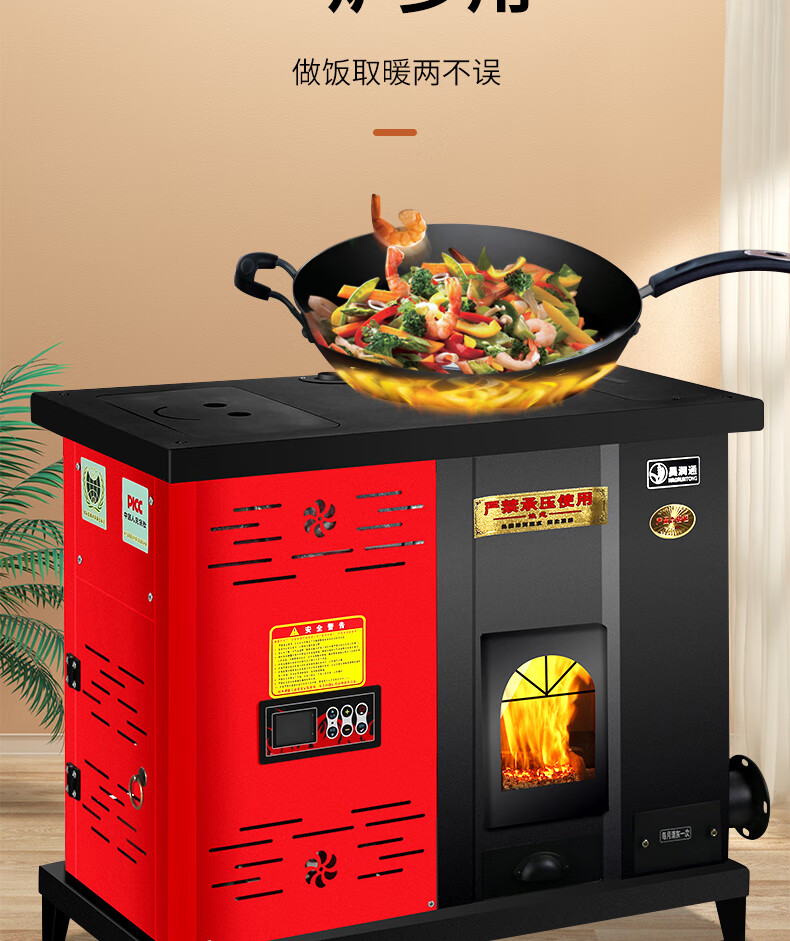丰强鸿智能生物质颗粒取暖炉带暖气片地暖家用采暖炉新型环保水暖颗粒炉 80型水暖炉【炊事取暖两用】_供暖面积60-80㎡