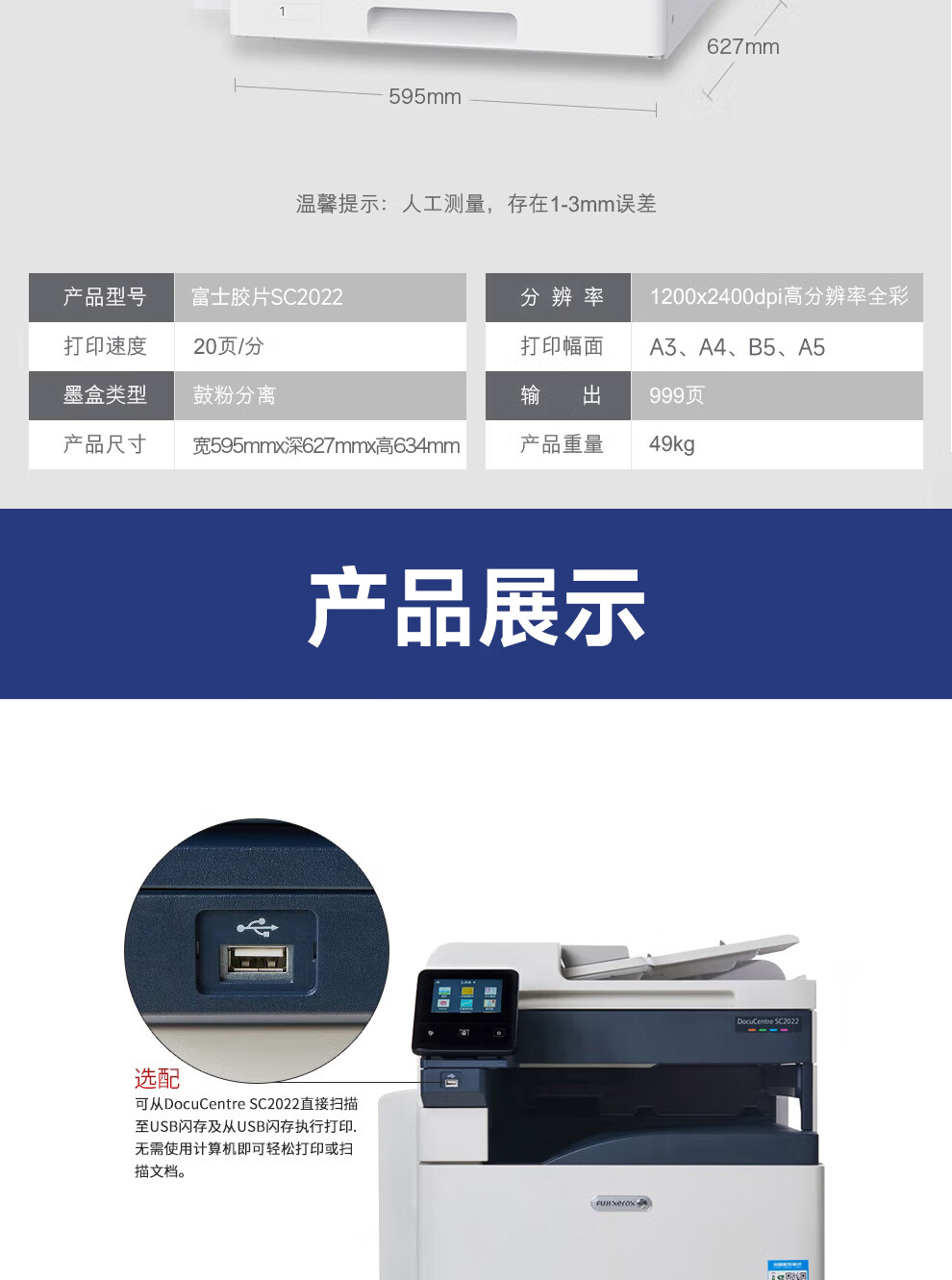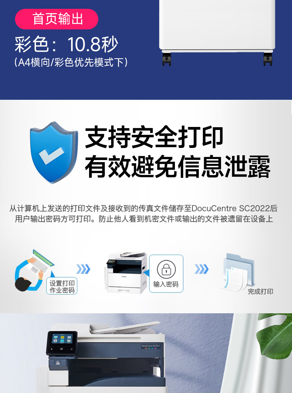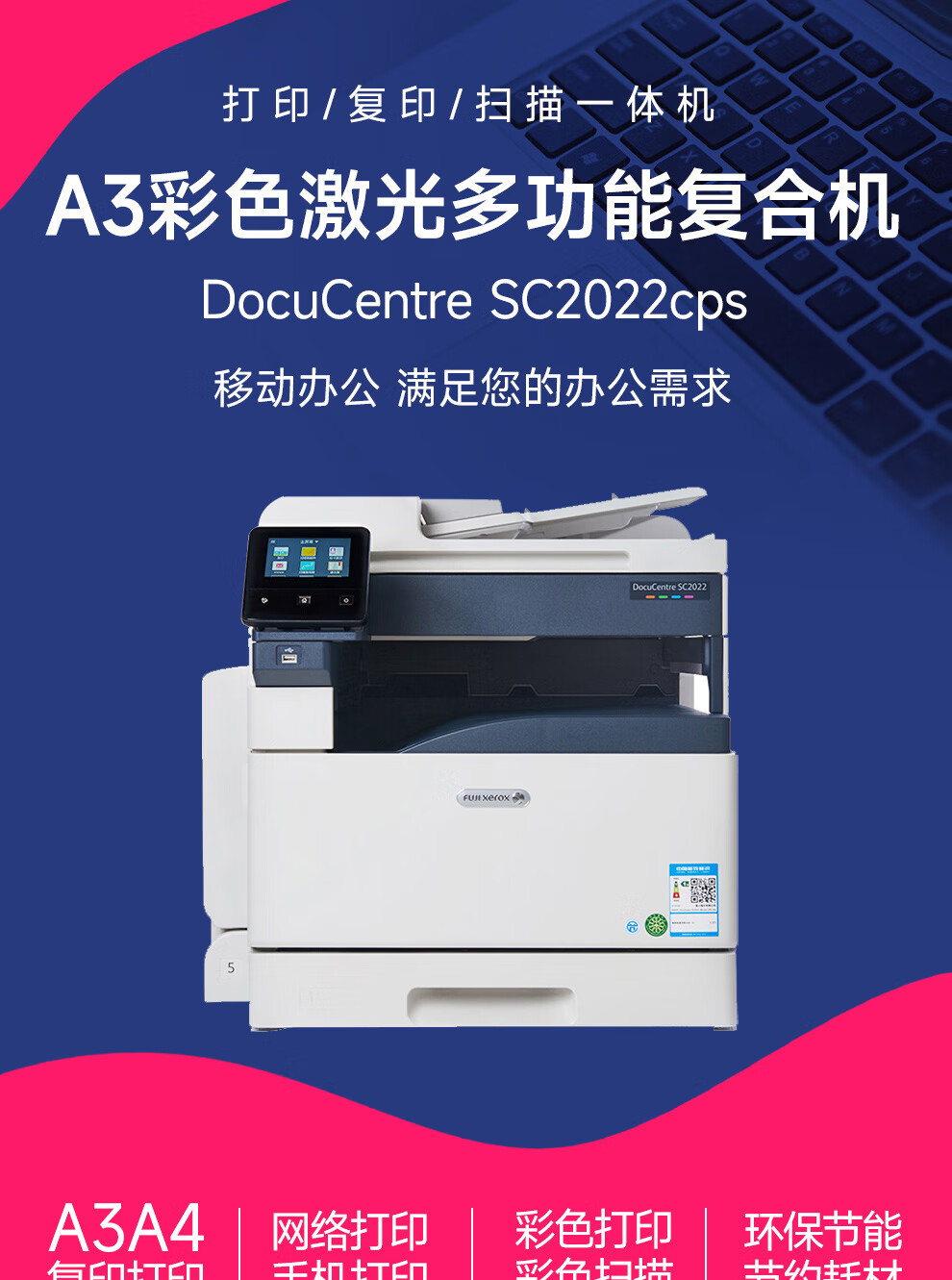 富士施乐a3彩色激光打印复印扫描自带输稿器SC2022 2020办公商用一体机 施乐SC2022九五新输稿器自动双面