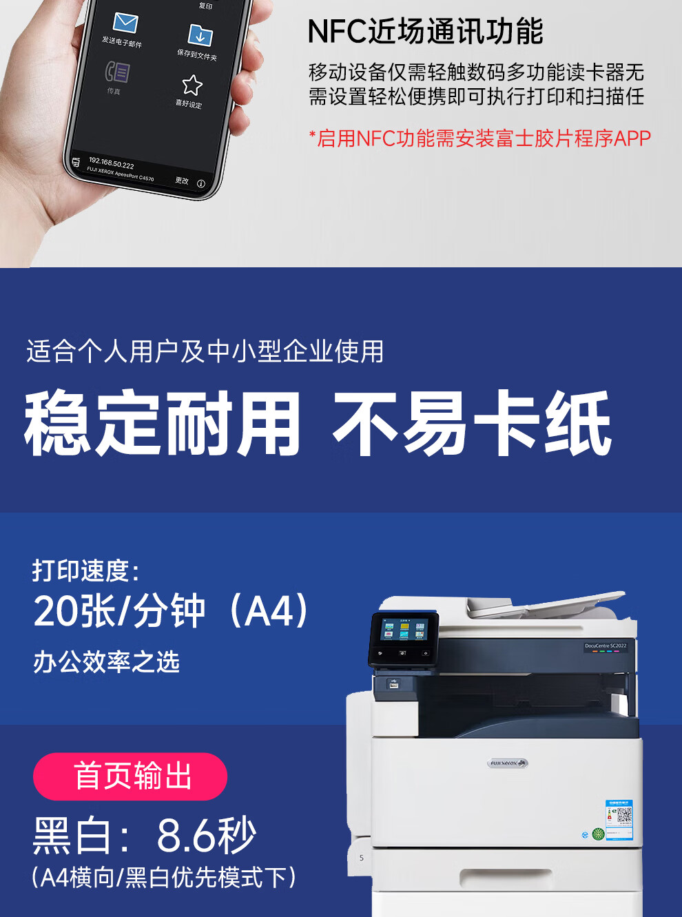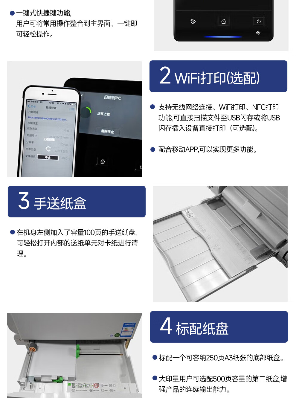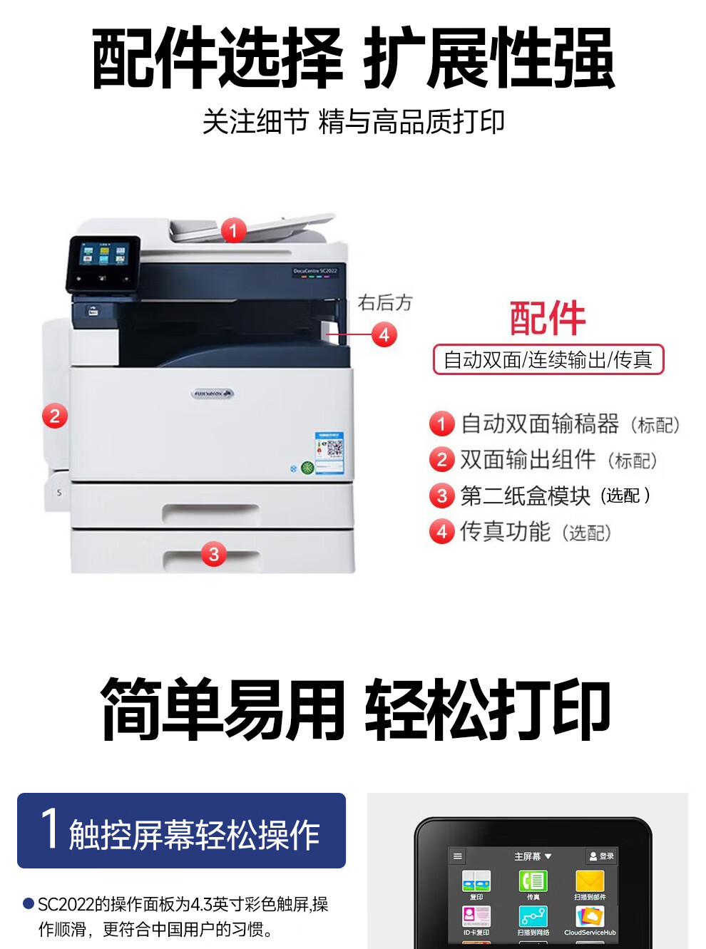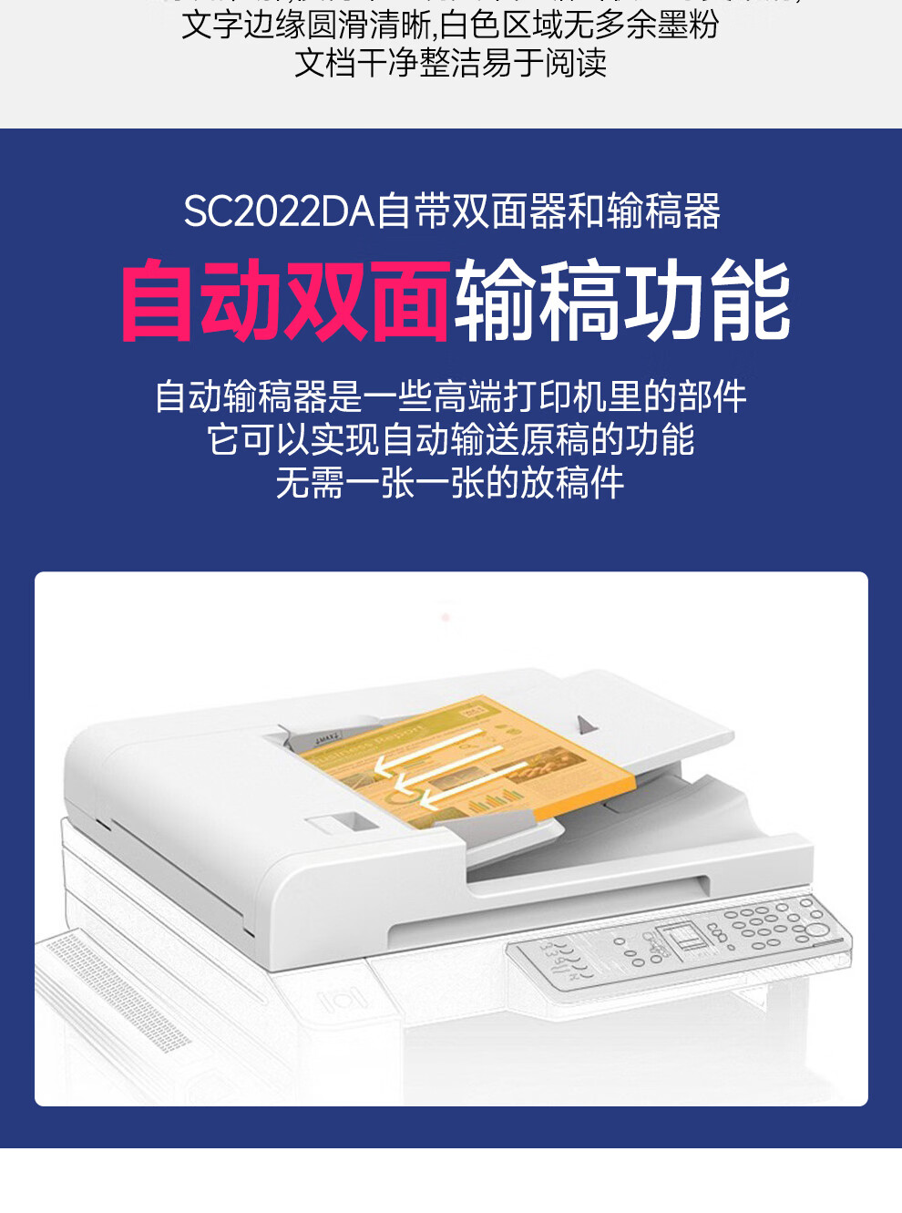 富士施乐a3彩色激光打印复印扫描自带输稿器SC2022 2020办公商用一体机 施乐SC2022九五新输稿器自动双面