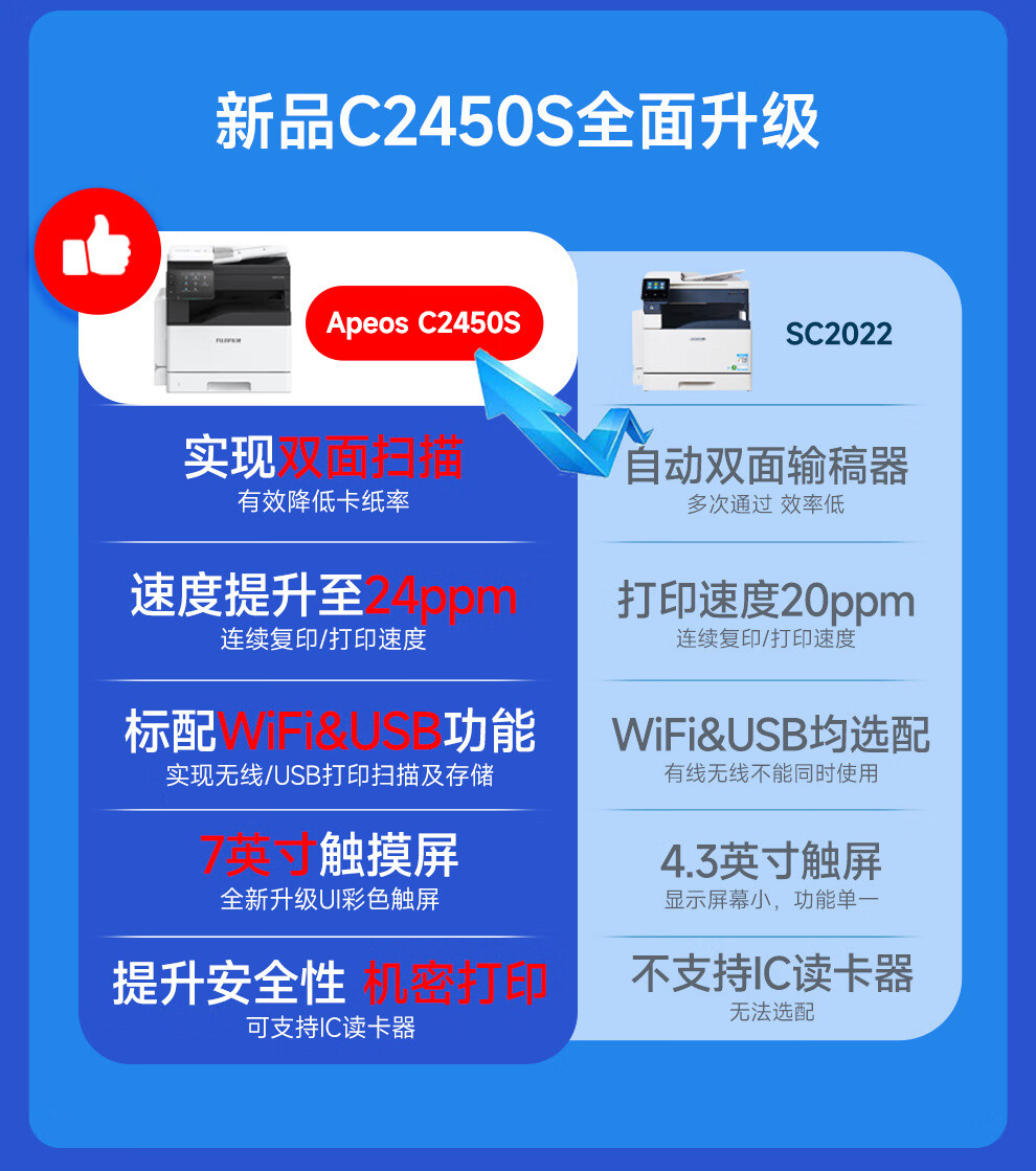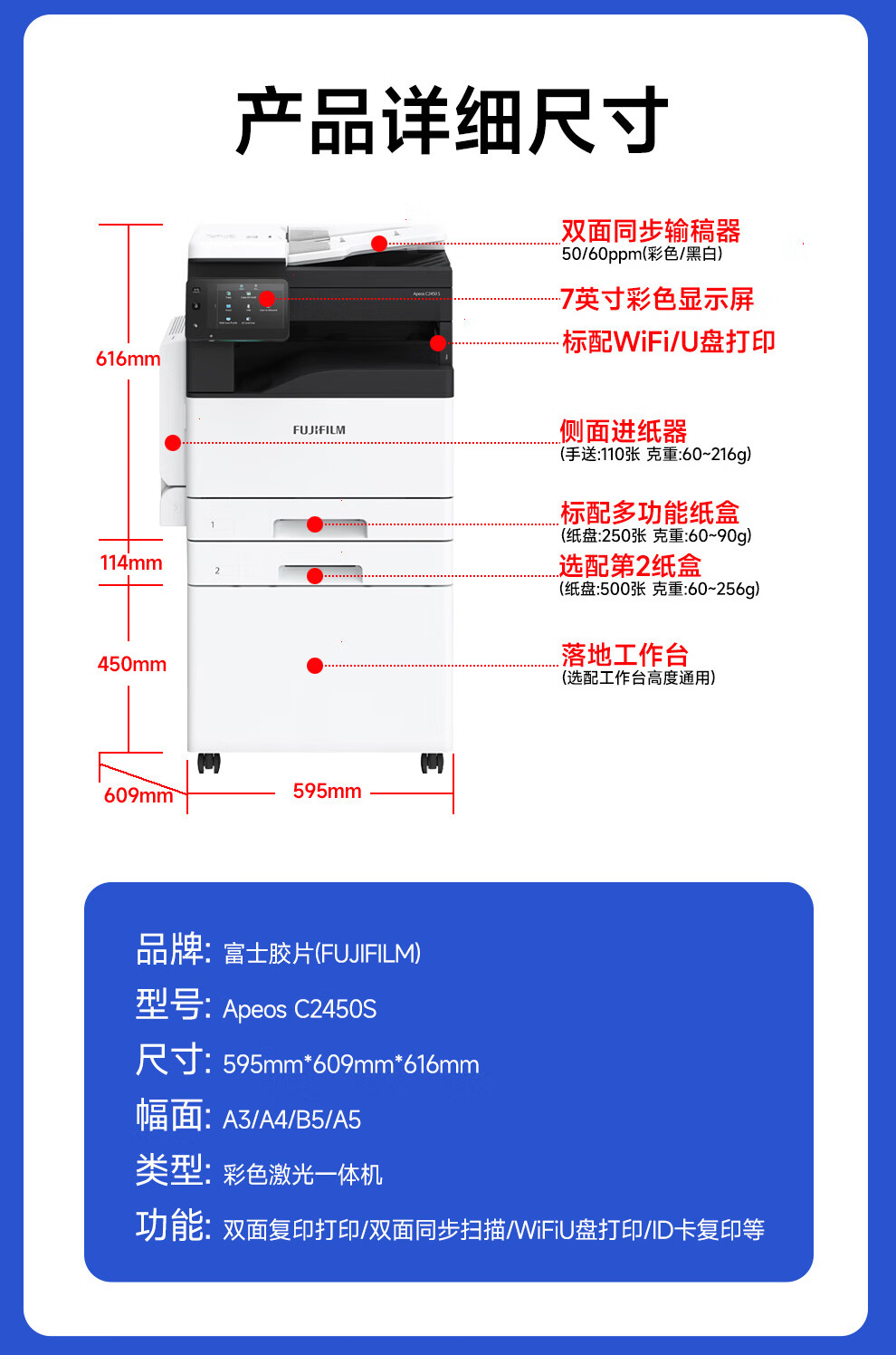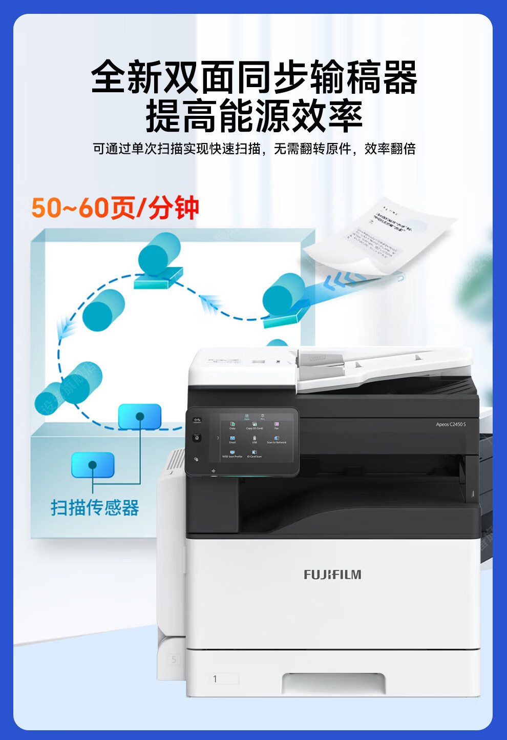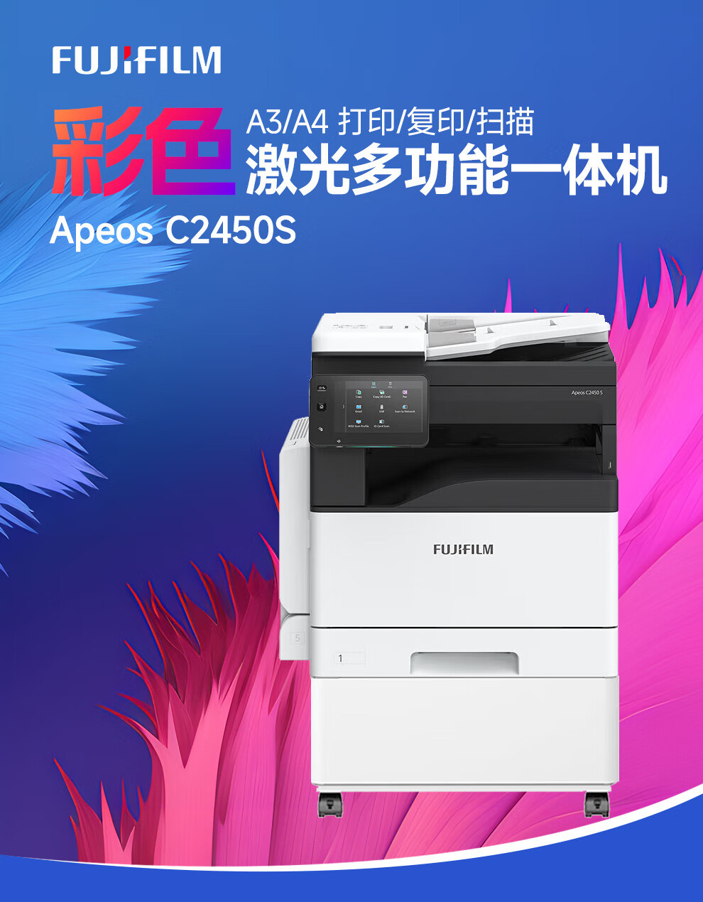 富士胶片C2450S大型办公商用a3a4彩色打印复合机 双面复印扫描WIFI 含输稿器+单纸盒+上门安装SC2022升级版
