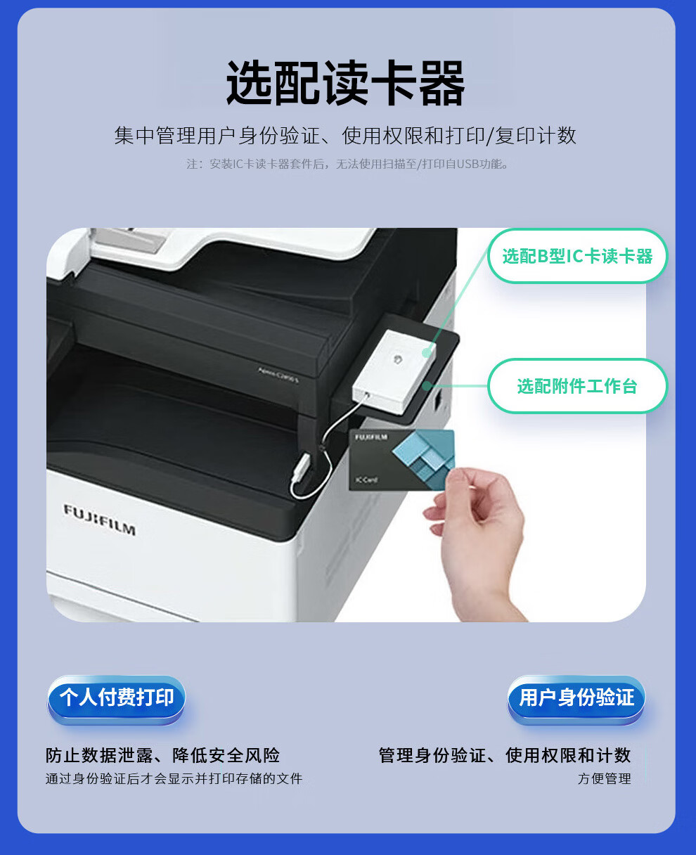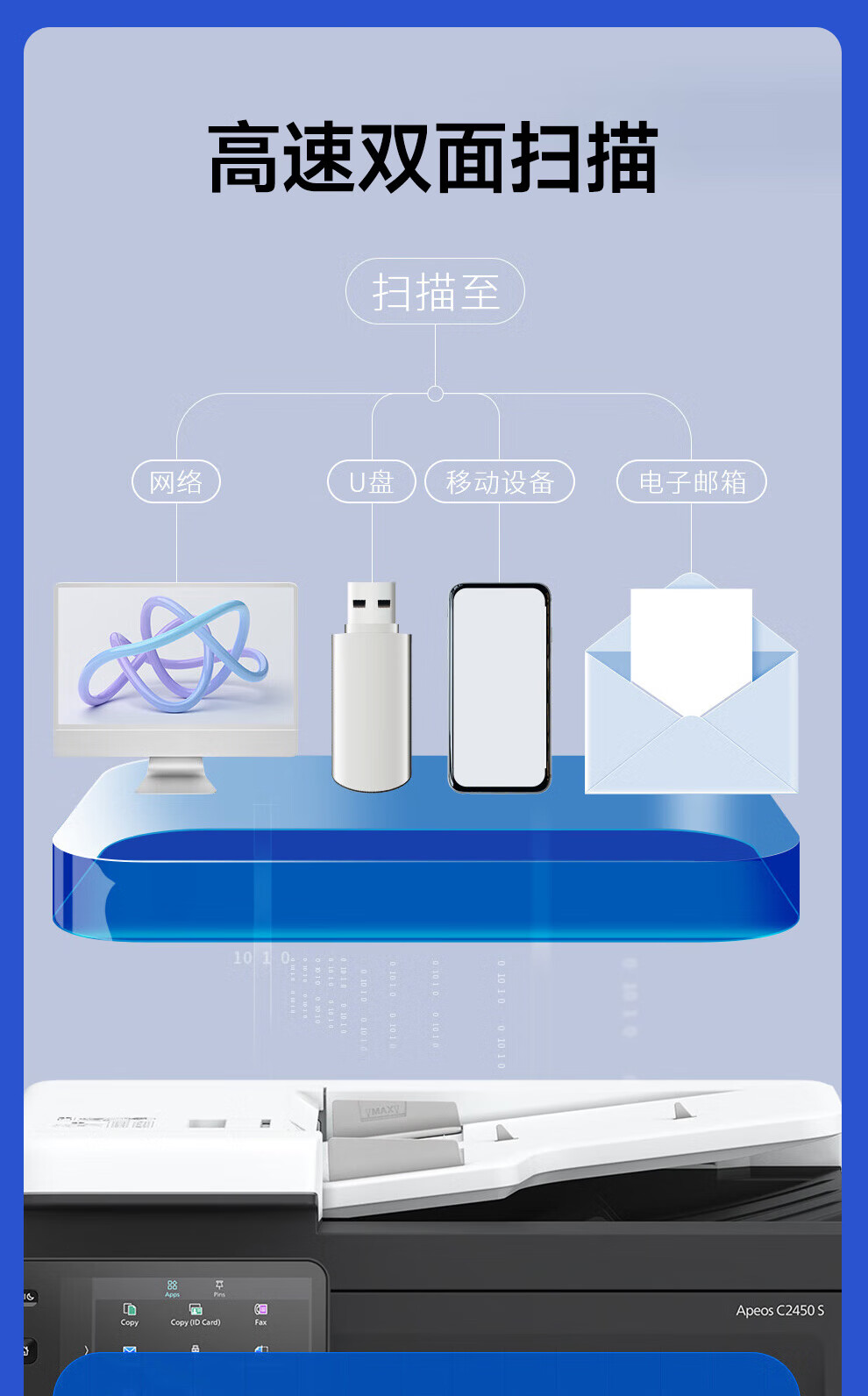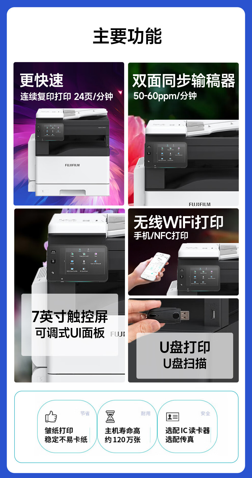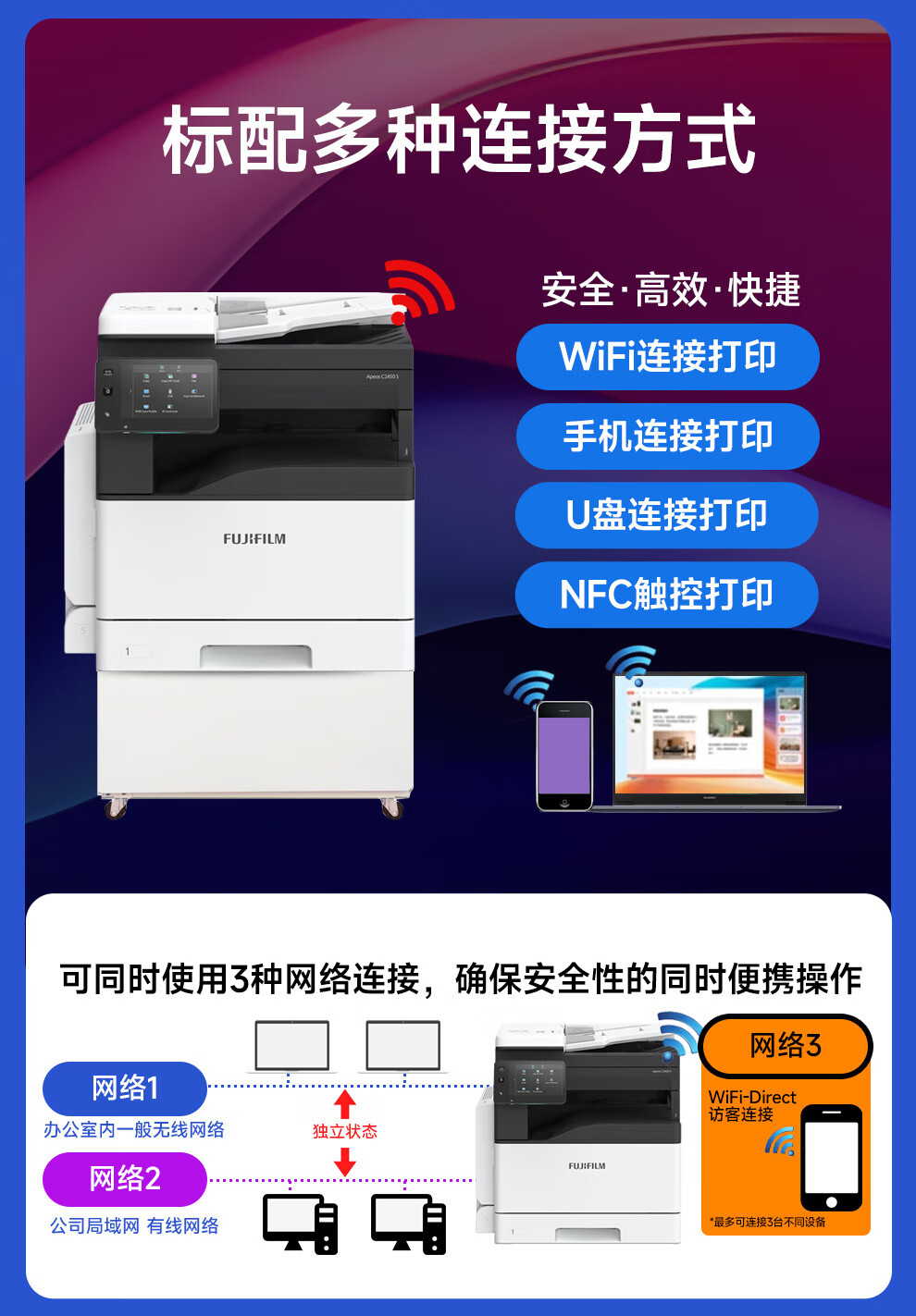 富士胶片C2450S大型办公商用a3a4彩色打印复合机 双面复印扫描WIFI 含输稿器+单纸盒+上门安装SC2022升级版