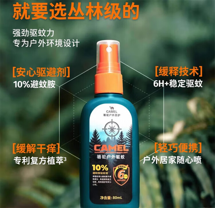骆驼户外驱蚊液喷雾户外防蚊神器避蚊胺便携驱虫钓鱼露营驱蚊水 【长效驱蚊6h】20ml