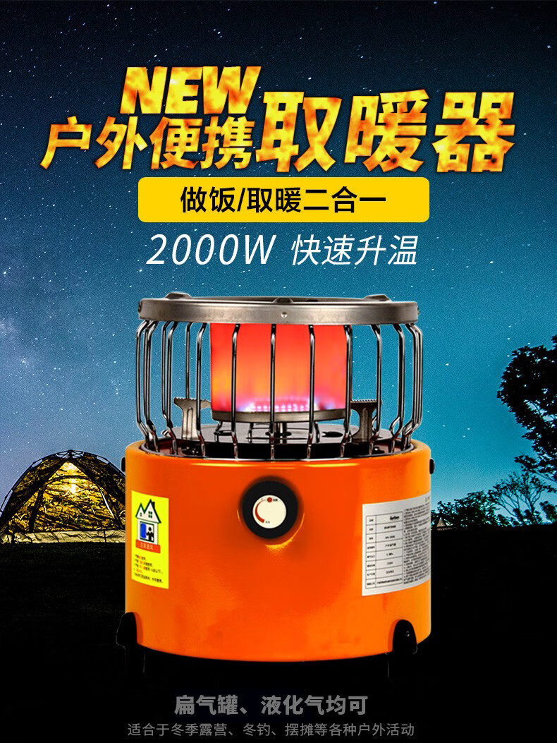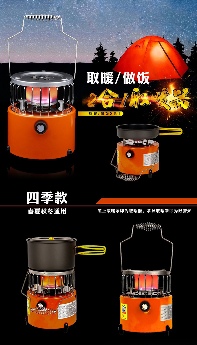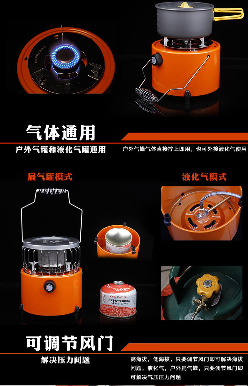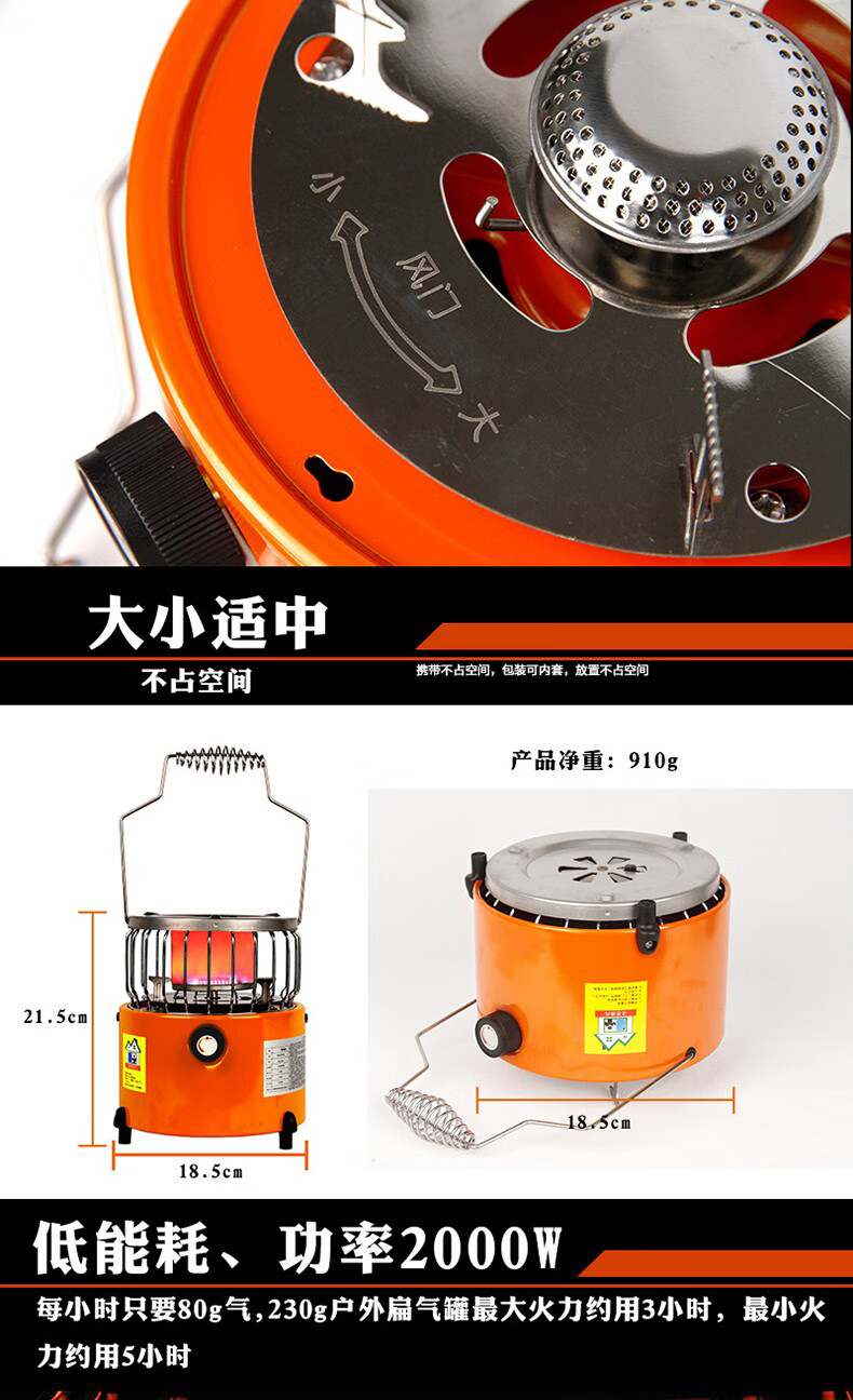 SEAROCK 海岩野营炉具户外取暖炉头防风便携煤气燃气灶取暖器猛火炉两用 迷你取暖炉橙色+取暖罩